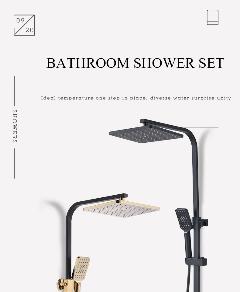 Набор для душа для ванной комнаты, настенное крепление, черная система для душа, квадратный спрей для неба и дождя, смеситель для ванны, роскошный Термостатический смеситель для ванны