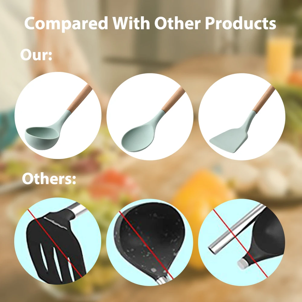 3. Силиконовая посуда с деревянными ручками не может использоваться в посудомоечных машинах. После волдырей, тепловое расширение и сжатие будут тяжелыми.