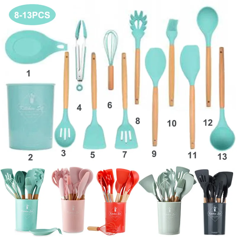 Набор силиконовой посуды-кухонный помощник, идеально подходит для всех видов продуктов и кухонных принадлежностей.