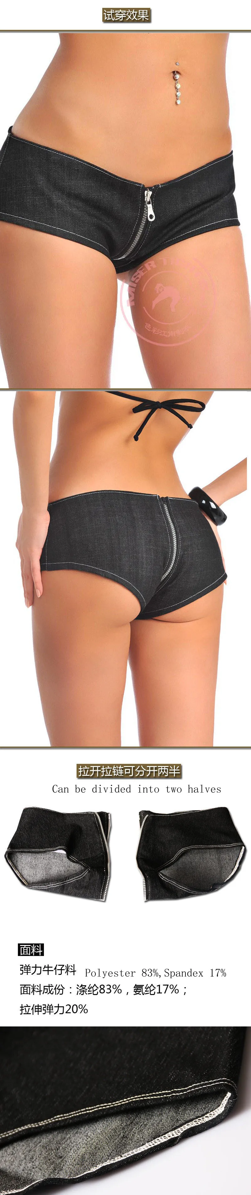 Hot Sexy Zipper Open Crotch Short Jeans Denim Booty Shorts Pole Dance Clubwear Micro Mini Bermudas Feminina Pantalon Panties