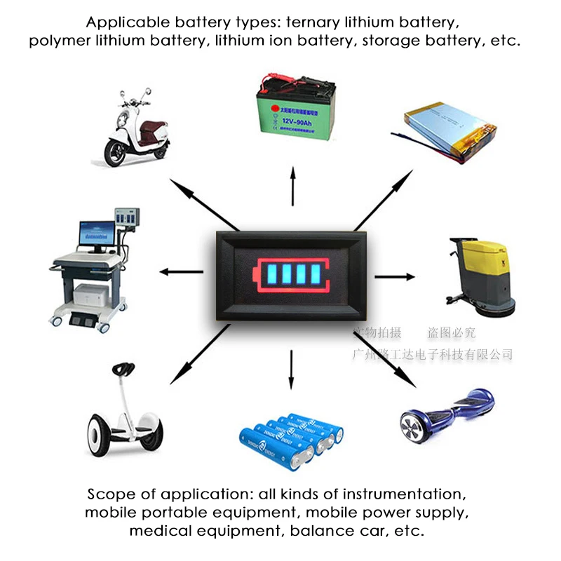 <Легко подключить: Подключите положительную и отрицательную дисплейную панель к положительным и отрицательным клеммам протестированного аккумулятора, и на дисплее будет отображаться мощность аккумулятора в режиме реального времени