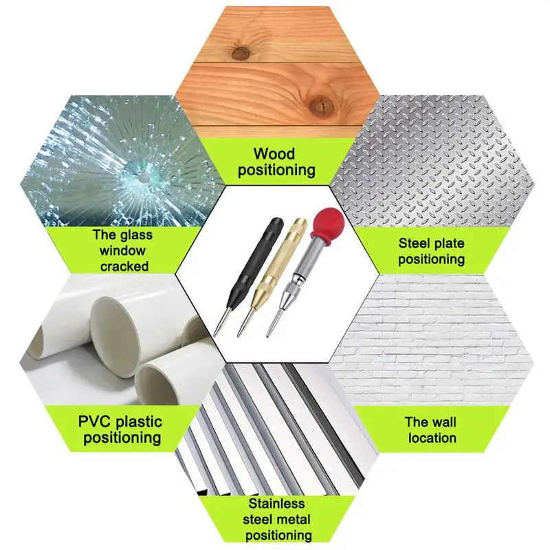 Многоразовое использование: автоматический Перфоратор с центральным отверстием подходит для различных задач, таких как маркировка материалов, аварийные инструменты для автомобилей, альтернативный аварийный молоток и позиционирование железной пластины, позиционирование древесины, позиционирование стен, И т. Д.