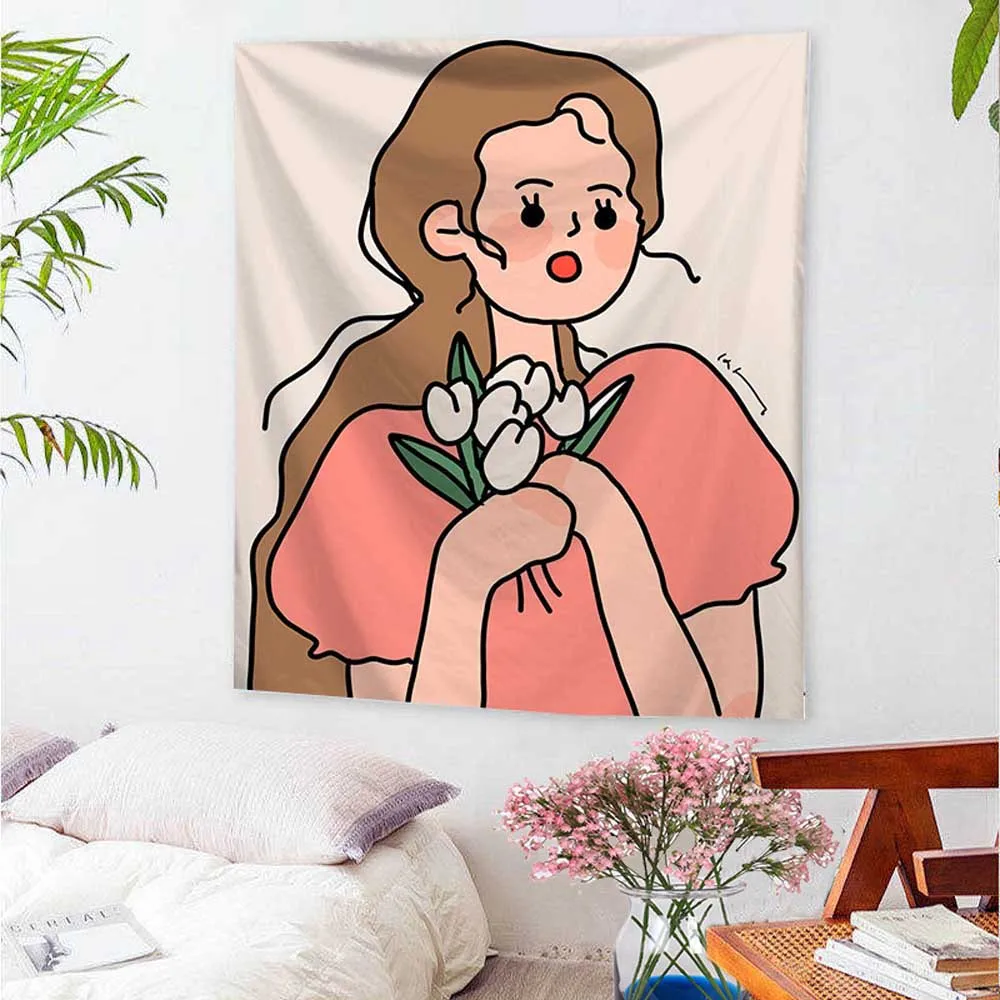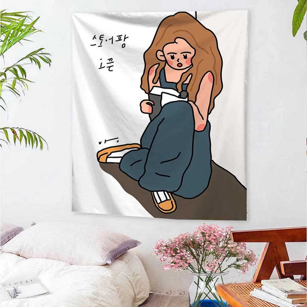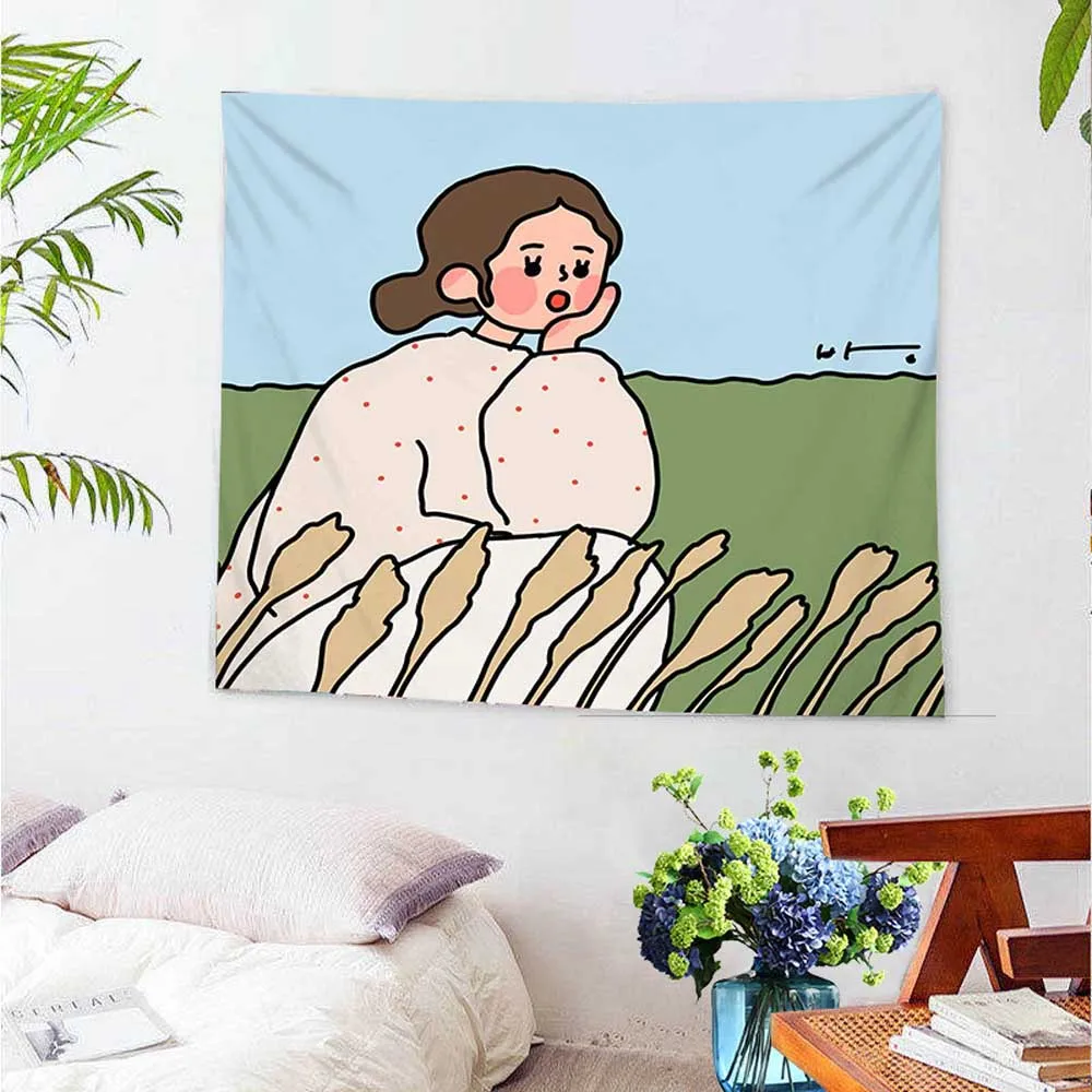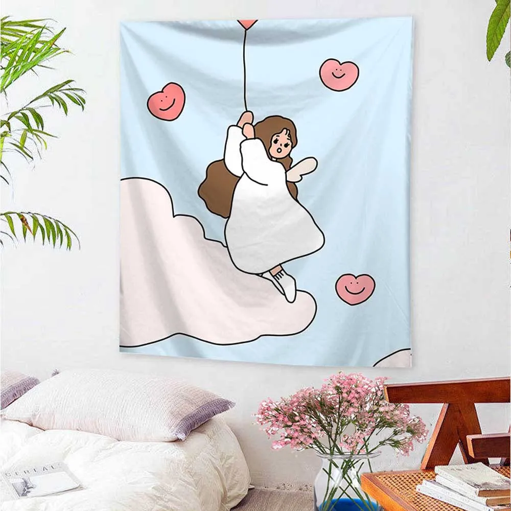 Милый гобелен с рисунком для девочек, большой комический гобелен, настенный принт, Художественная ткань, Декор, одеяло, спальный коврик, Йога, INS, ковер 230x180 см 150