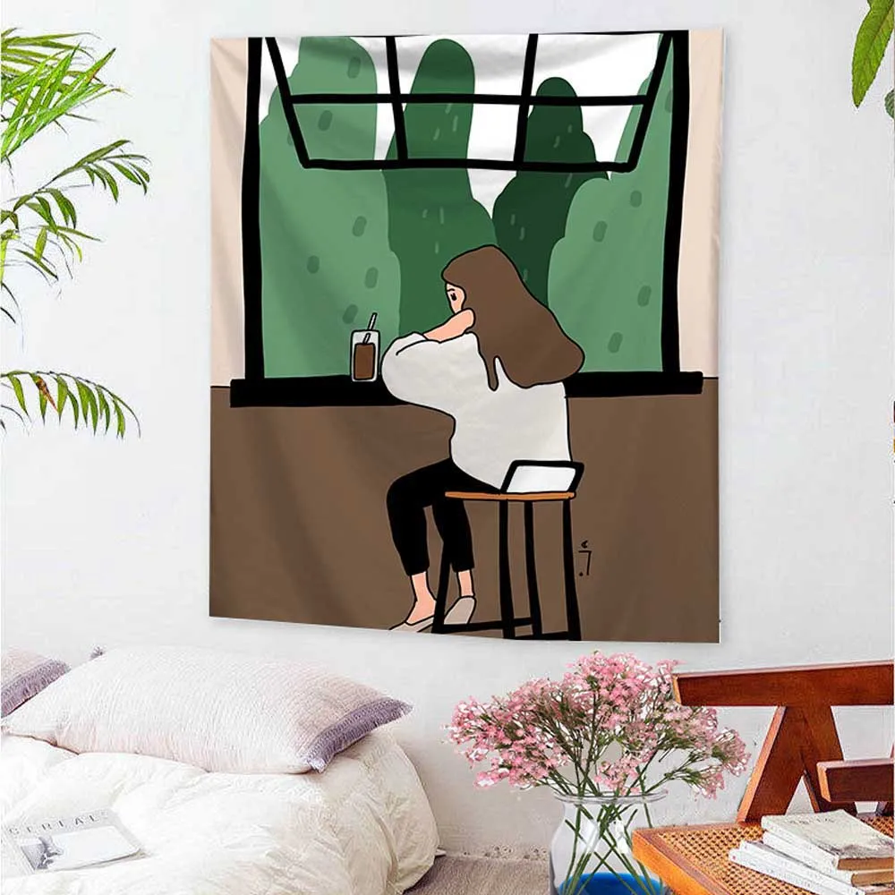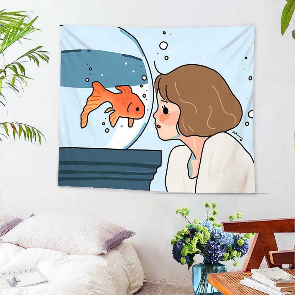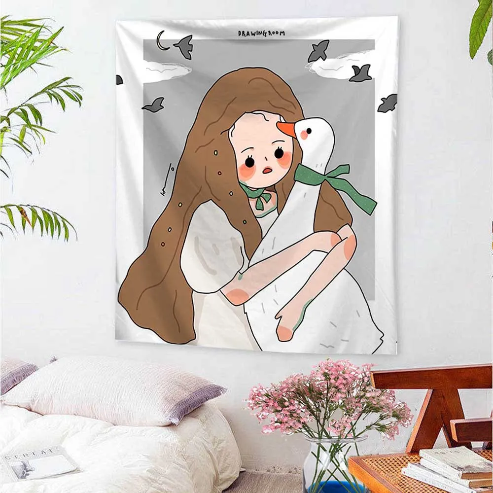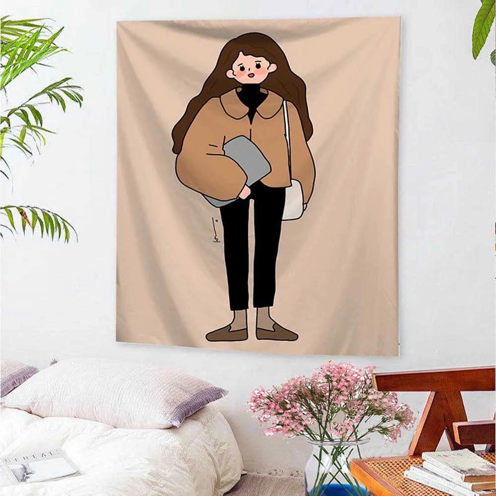 Милый гобелен с рисунком для девочек, большой комический гобелен, настенный принт, Художественная ткань, Декор, одеяло, спальный коврик, Йога, INS, ковер 230x180 см 150