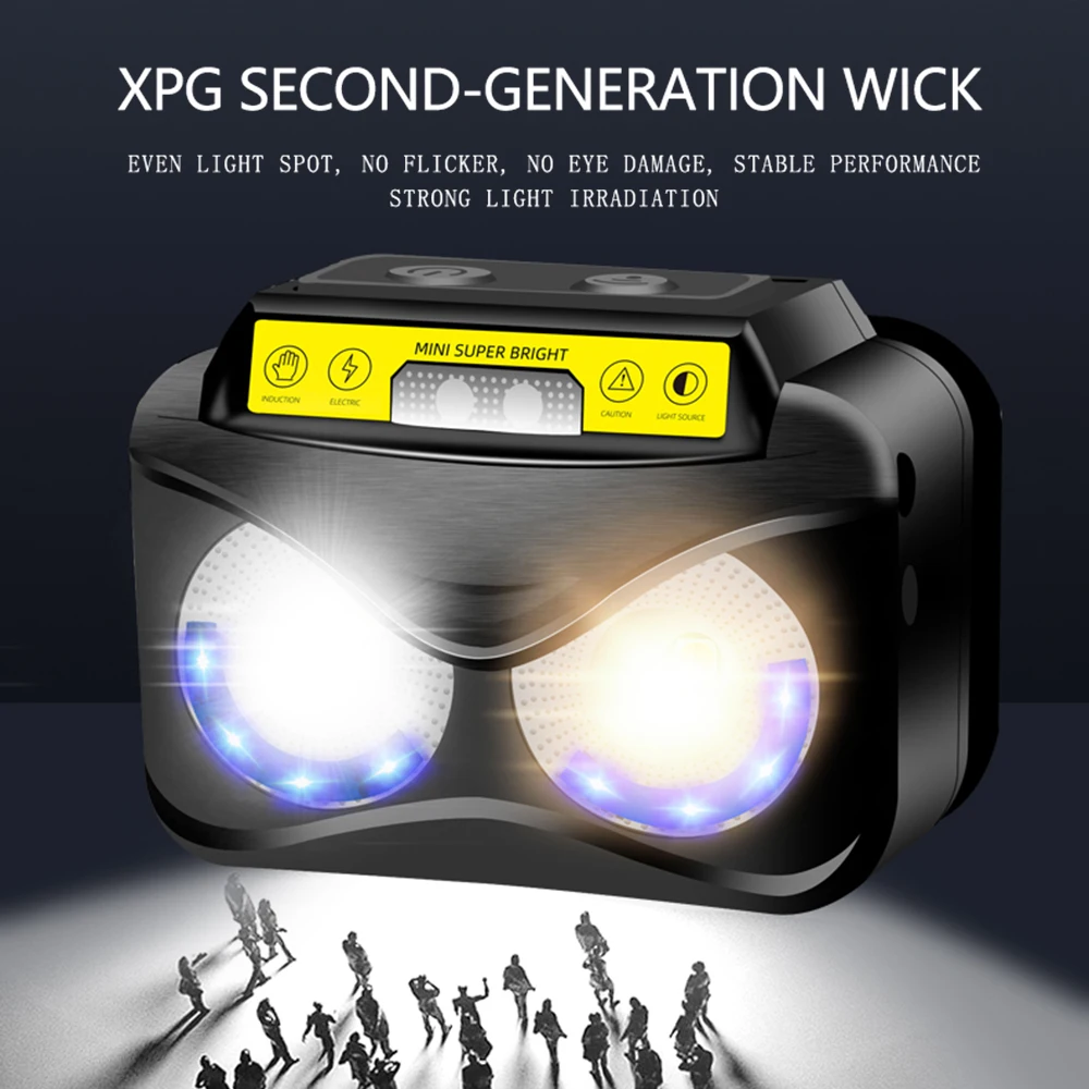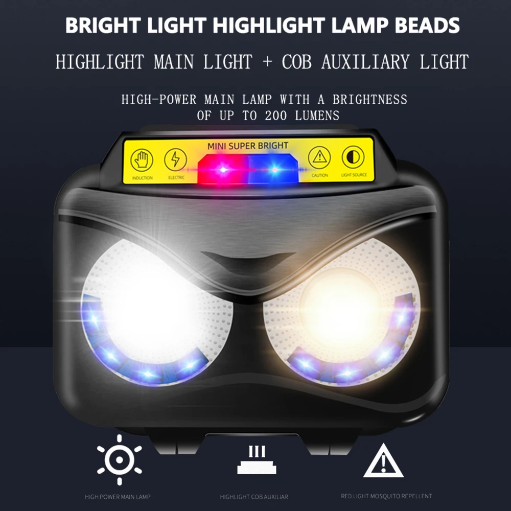 ● 6 режимов освещения. XPG High-XPG-Low-XPG Strobe-COB High-XPG COB-Red Blue Strobe, доступны другие режимы. ● Водонепроницаемый налобный фонарь: супер яркий водонепроницаемый фонарь с расширенным сроком службы LED-светодиодов до 100000 часов. ● USB порт для зарядки: для чрезвычайных ситуации, USB порт может поддерживать различные методы зарядки. ● Датчик Ручной волны: Используйте Взвешивание чувств, чтобы полностью освободить руки. Больше не придется снимать перчатки или складывать руки из инструментов, только нужно шикарно помахать.