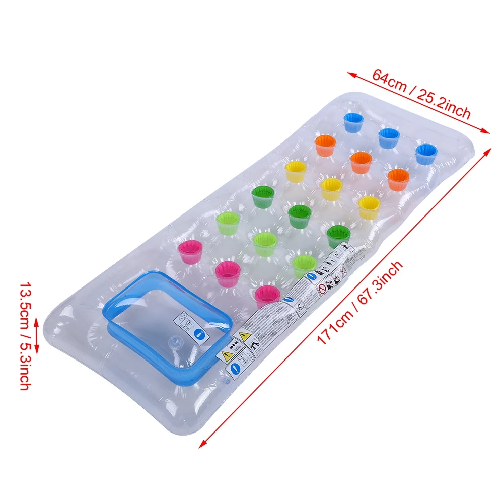 Изготовлен из высококачественного ПВХ-материала, прочный, прочный и легкий. Экологически чистый и нетоксичный, Безопасный в использовании. Специальный дизайн хорош для противоскользящего сидения или укладки на нем. Дизайн с карманами, дышащие и удобные. Достаточно большой для взрослых и детей. Легко надувать, можно сложить в небольшой размер для удобной переноски и хранения. Подходит для бассейна и пляжа.