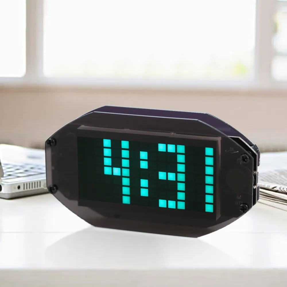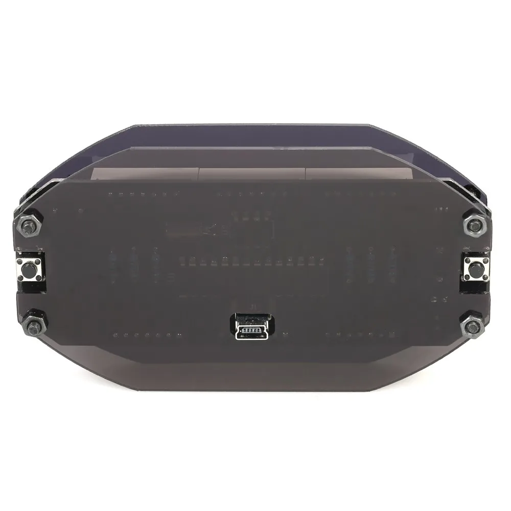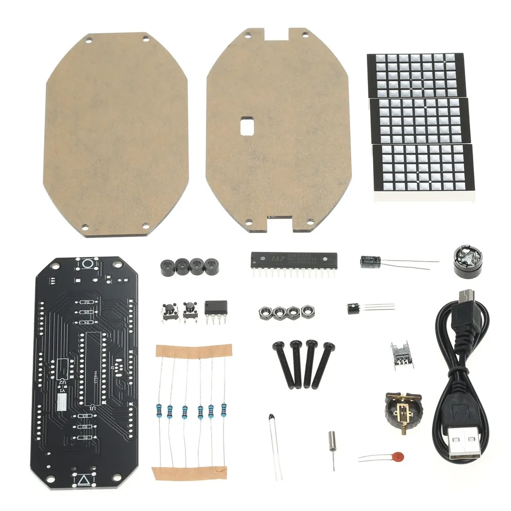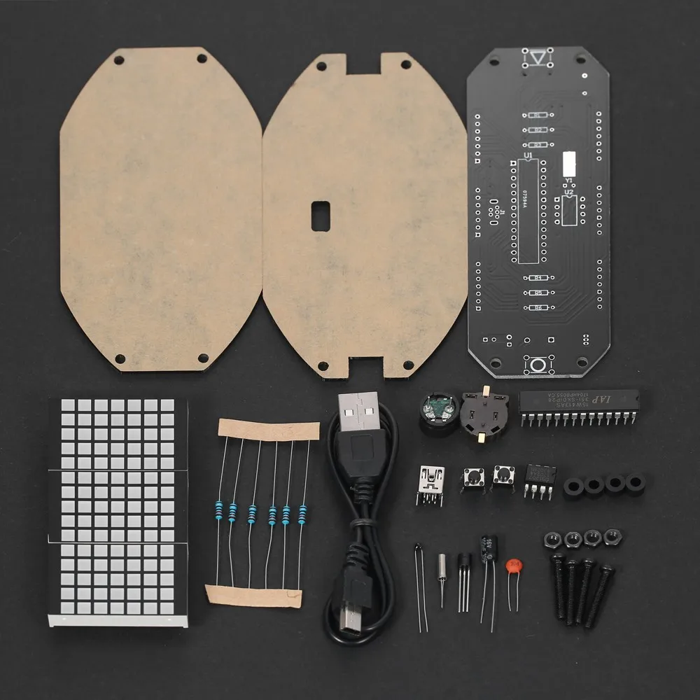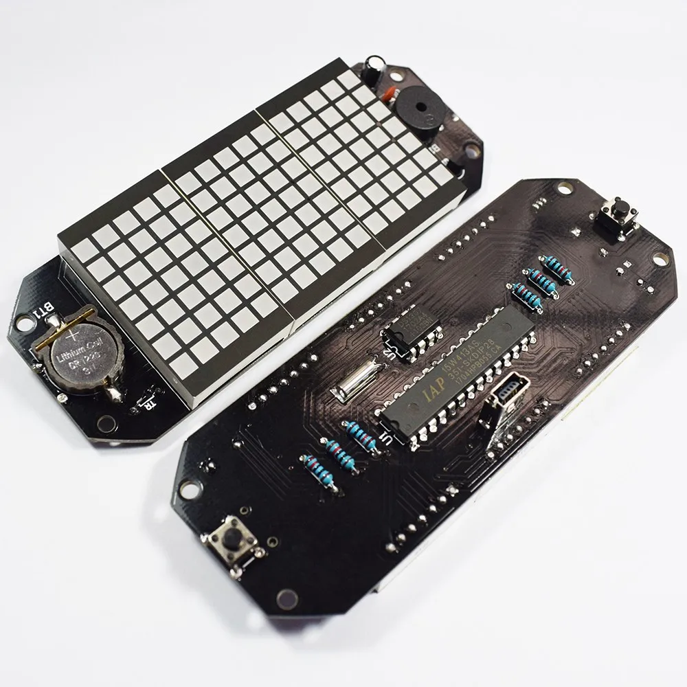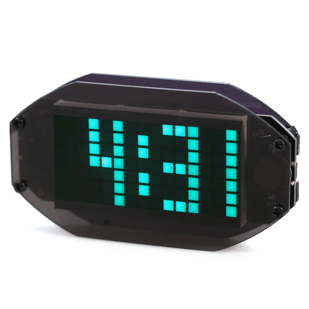 Этот светодиодный часы matrix изготовлены из двух черных полупрозрачных акрила, а печатная плата, винт, винтовые гайки и колонна с отверстиями-черного цвета. Выглядит так, будто у него есть чувство загадочности, когда он соединяется вместе. Передняя часть как зеркало при выключении питания. Черный акрил может уменьшить помехи на внешний светильник, благодаря чему вы все еще можете четко читать время даже под сильным светильник. Он может отображать температуру, день, дату, день рождения и важный фестиваль, вы можете выбрать различные виды анимации перехода, или вы также можете выбрать режим времени только. Он также может переключить Фаренгейт ℃ и Цельсия ℉ с одной кнопкой. Особенности: Светодиодный дисплей с точечной матрицей с черным и полупрозрачным акриловым дизайном. С функцией будильника, формат 12 ч/24 ч для выбора, отображение времени и ℃/℉ температурного переключателя. 5 видов дисплея, 4 вида среднего точечного эффекта поворота и 5 уровней светодиодный яркости. Важный фестиваль прокрутки дисплей (как День Святого Валентина! С Рождеством! И так далее). Функция напоминания о дне рождения (показывает день рождения, когда дата приближается). 4 вида анимационного перехода могут изменить время, температуру, данные и неделю (или только режим времени). С помощью чипа часов DS1307 в режиме реального времени данные напоминают о выключении питания с помощью резервного аккумулятора (резервная батарея не входит в комплект). 5 в USB кабель питания и все с использованием DIP компонентов для припоя, легко сделать и подходит для начинающих. Характеристики: Материал: акрил Цвет изделия: черный Светодиодный Цвет: зеленый Источник питания: 5 В USB или проводное соединение Диапазон температур: 0 ℃ ~ 43 ℃ / 32 ℉ ~ 109 ℉ Формат часов: 12 ч/24 ч Светильник: 5 уровней яркости Шрифт дисплея: 5 видов Поворотный эффект средней точки: 4 вида Запасная Батарея: 1 * CR1220 кнопочный аккумулятор (не входит в комплект) Источник питания: 5 В постоянного тока Размер печатной платы: 111*62 м Размер часов: 111*62*18 мм Размер посылка: 11,5*6,5*4 см/4,53*2,56*1,57 дюйма Вес посылка: 90 г/3,18 унций Функция: 1. Нажмите кнопку подтверждения (левая клавиша) для входа или выхода из списка функций меню. 2. Короткое нажатие на следующую клавишу (правая клавиша), чтобы выбрать различные функции, меню функций имеет время (настройка времени), дату (Настройка даты), будильник (Настройка будильника), шрифт (Тип шрифта), DISP (Настройка анимации перехода), Midp (эффект поворота средней точки), FMT (набор 24/12H формата), BRH (Установите дату рождения), Brig (яркость). Затем нажмите кнопку подтверждения (левая клавиша), чтобы войти в режим параметров. 3. Короткое нажатие на следующую кнопку (правая клавиша), когда она показывает температуру, она может переключить Фаренгейт и формат Цельсия. Параметры настройки: 1. Настройка будильника: Включение-включение будильника времени и вход в режим параметров, выключение-выключение будильника времени. 2. Тип шрифта: тип 1, Тип 2, тип 3, Тип 4, тип 5. 3. Настройка отображения анимационного эффекта: 1-левый Режим Прокрутки, 2-режим развертки, 3-одиночный режим падения, 4-режим переворачивания, только 5 раз. 4. Поворотный эффект средней точки: 1-Сближение среднего режима, 2-вверх и вниз режим пропуска, 3-вверх и вниз режим перемещения, 4-горит в секунду. 5. Формат времени: 24H-24h формат времени, 12H-12h формат времени. 6. Установите дату 