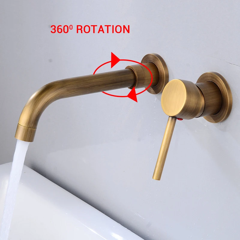 Скрытый настенный кран для раковины смеситель горячей и холодной воды кран для ванной комнаты 360 градусов вращение матовый черный кран античные золотые краны