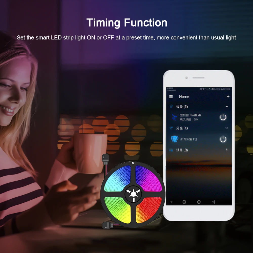 Функция синхронизации: Установите смарт-светодиодную ленту на или выключить в заданное время, более удобно, чем обычный свет.