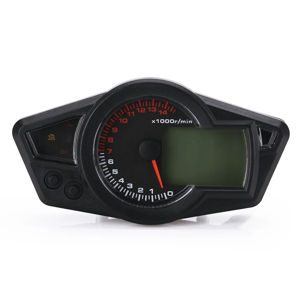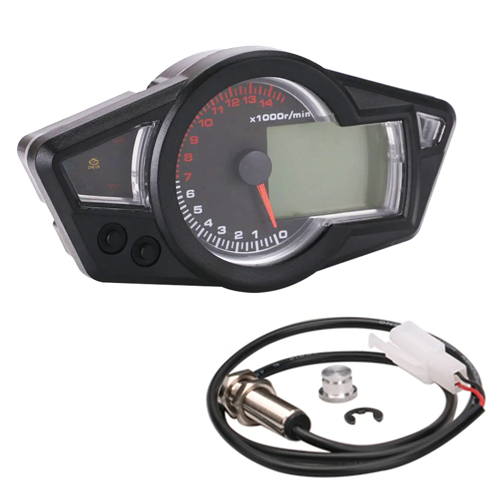 Этот продукт является Многофункциональным Цифровым ЖК-спидометром для мотоцикла. Включая цифровой дисплей спидометра, дисплей одометра, тахометр дисплей, само лампа проверки, дисплей уровня топлива, левый и правый индикатор, N шестерня, батарея, индикатор температуры воды.
