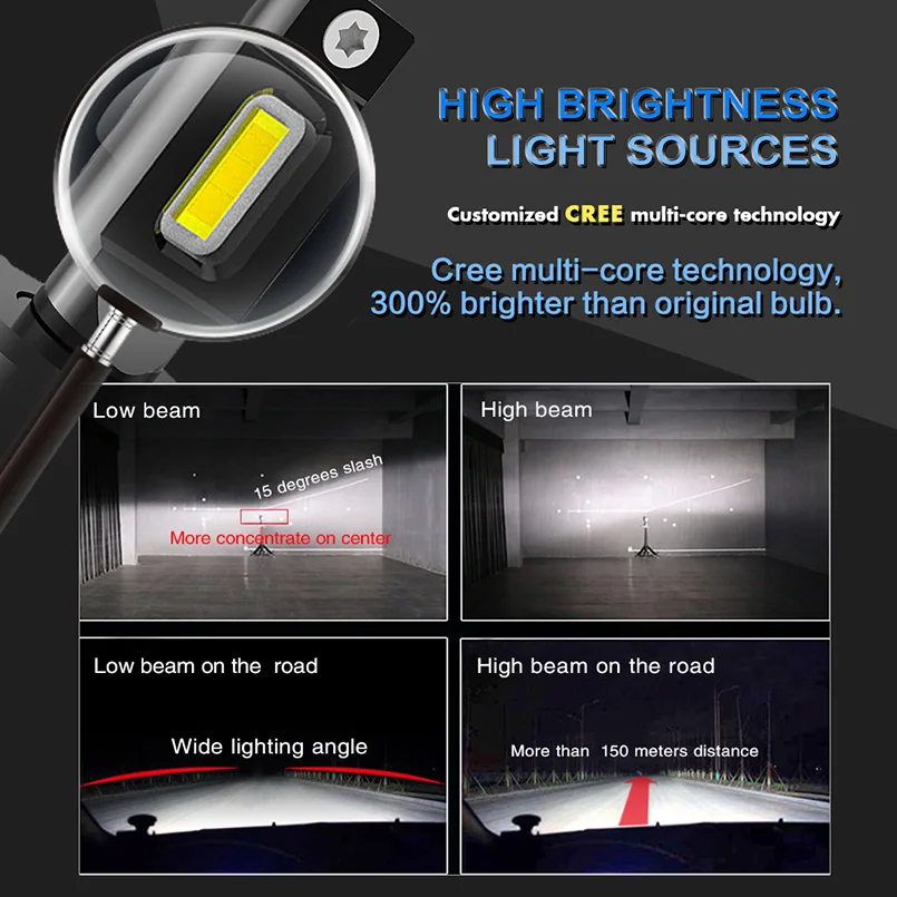 Мощность 55 Вт Цветовая температура: Световой поток: 12000LM Рабочее напряжение: 9-30 В постоянного тока (подходит для транспортных средств 12 В, 24 В). (Чип на плате) Срок службы:> 30000 часов Материал корпуса: авиационный алюминий 6063 Цвет освещения: 6000K белый Рабочая температура: -40 градусов ~ + 80 градусов
