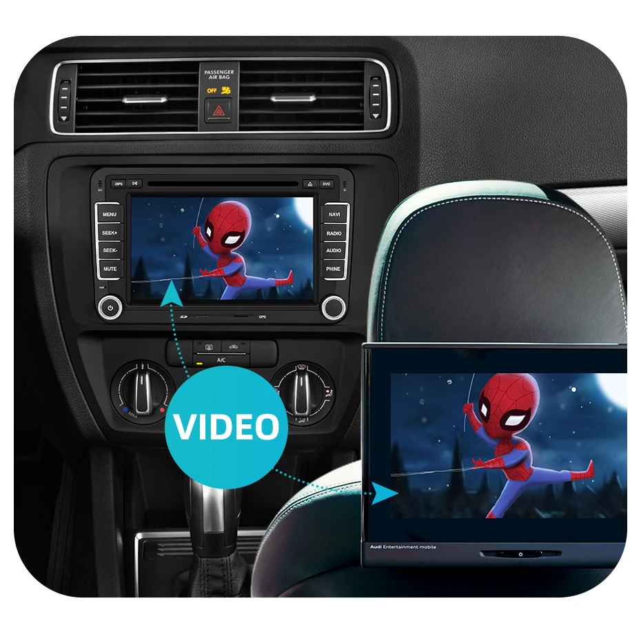 1. Поддержка воспроизведения видео. Больше удовольствия от вождения. 2. 7 видов цветов кнопки на выбор. 3. Поддержите экран подголовника.