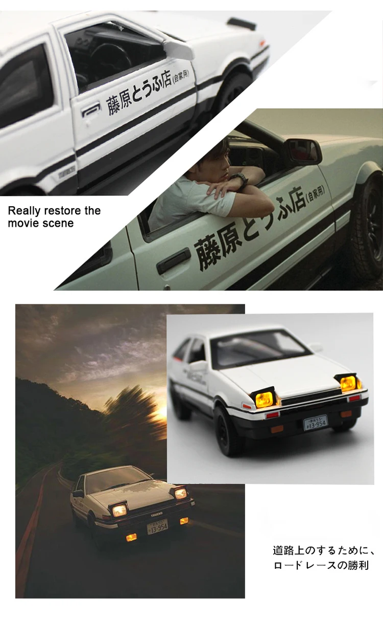 AE86-автомобиль Fujiwara Takumi. Когда с горы акина выпал 86 с надписью "Fujiwara Tofu Shop", интенсивное трение шин и малошумный двигатель стимулировали безумное выделение гормонов во всем организме. Первое желание искушено. 86 также привлек большое количество верных поклонников изображением комиксов и фильмов. Несмотря на то, что она была прекращена на протяжении 30 лет и ее коллекция является крайне редкой, ее до сих пор пользуются спросом у многих людей сегодня.