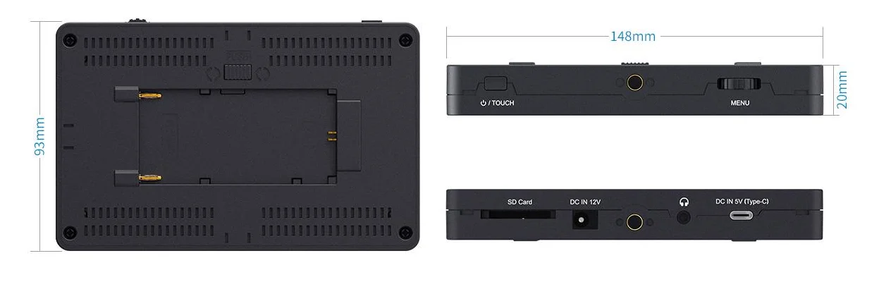 F6 PLUS составляет 5,5 дюйма и всего 235 г, что делает его идеальным размером и весом для полевого производства. Вся конструкция монитора прочная и компактная, что позволяет легко установить ее на камеру DSLR или даже стабилизатор gimbal. Это дает вам свободу хорошо снимать в любом месте.