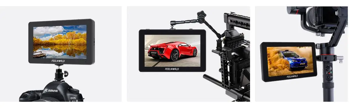 FEELWORLD F6 PLUS имеет стандартные точки крепления 1/4 "(сверху, снизу, справа) для крепления к камерам и снарядам. Вы можете не только установить его на монитор через Наклонный рычаг, но и установить его на Ручной Стабилизатор или надежно прикрепить к верхней части камеры в качестве конечного HD-видоискателя! Если вы установите его на нижнюю часть устройства, вы также можете объединить функцию переворота изображения для поддержания правильной ориентации экрана!