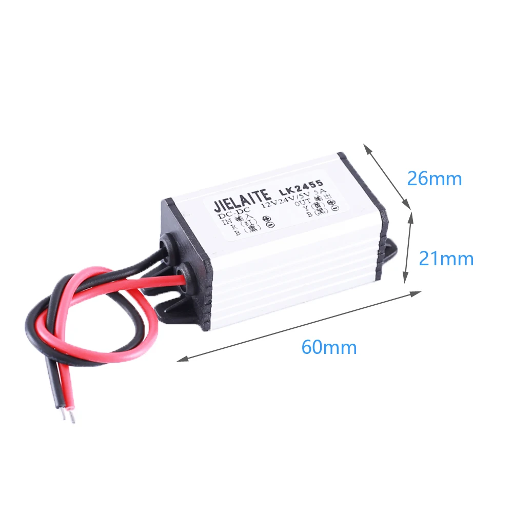 1. Описание: Это понижающий модуль питания. Он использует специальный процесс, продукт небольшой, уменьшает Электромагнитные и радиочастотные помехи, низкий уровень дефекта припоя, высокую надежность и сильную антивибрационную способность. 2. Особенности: 1>.IP68 Водонепроницаемый класс защиты. 2>. Он использует алюминиевый корпус, который имеет хороший эффект рассеивания тепла. 3>. Имеет фиксированный выход, безопасный и стабильный. 4>. Поставляется с семью интеллектуальными защитой. 3. Описание: 1>. Название продукта: понижающий модуль питания 2>. Входное напряжение: DC 8V ~ 40V(12V и 24V наиболее часто используются) 3>. Выходное напряжение: 5 В постоянного тока 4>. Выходной ток: 5A 5>. Ток без нагрузки: 35 мА 6>. Эффективность преобразования: 93% (мин) 7>. Материал корпуса: алюминиевый сплав 8>. Рабочая температура:-20 ℃ ~ 80 ℃ 9>. Рабочая влажность: 5% ~ 95% относительной влажности 10>. Размер: 60*26*21 мм 4. Посылка: 1>.1 шт. понижающий блок питания