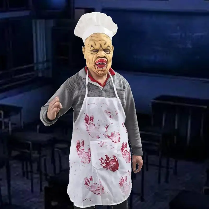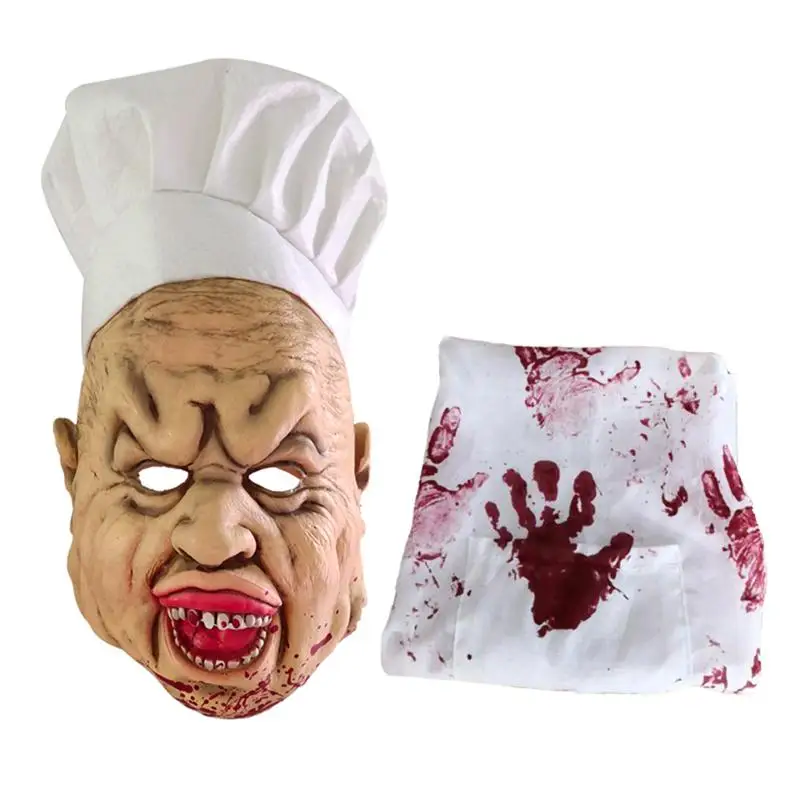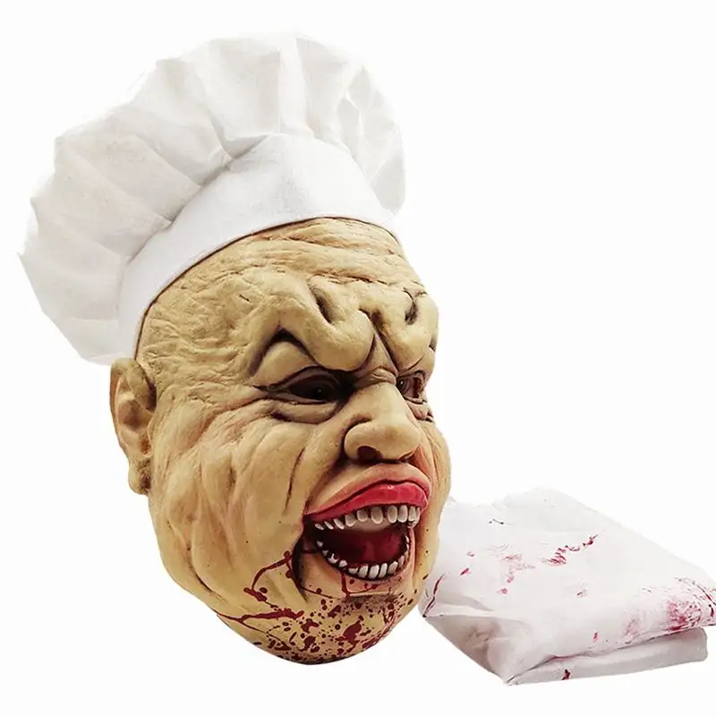 1 шт., маска для шеф-повара, латексный головной убор для косплея, маска гримаса, шляпа, фартук, набор, вечерние костюмы на Хэллоуин