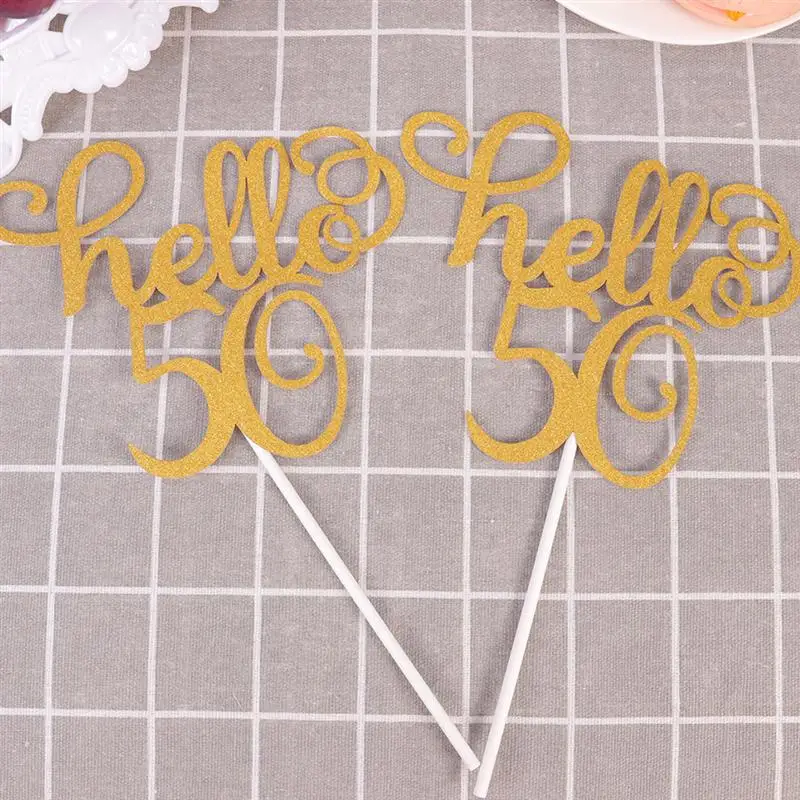 6 шт., украшение для торта, креативный день рождения, Hello 50, блестящая бумага, десерт, выбор, декор для торта, выбор торта, кекс, Топпер, вечерние принадлежности