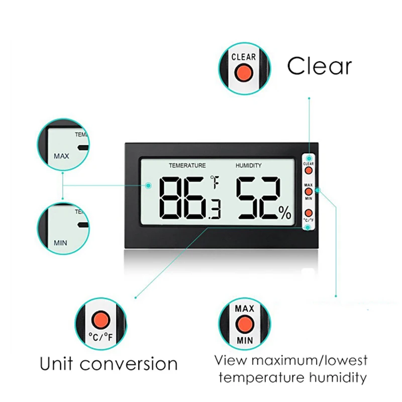 <Multifnction: с максимальной температурой влажности. И мин. Функция памяти, ℃ и switchпереключается.