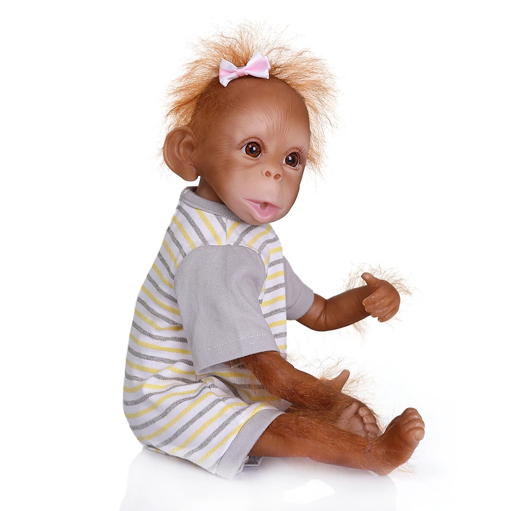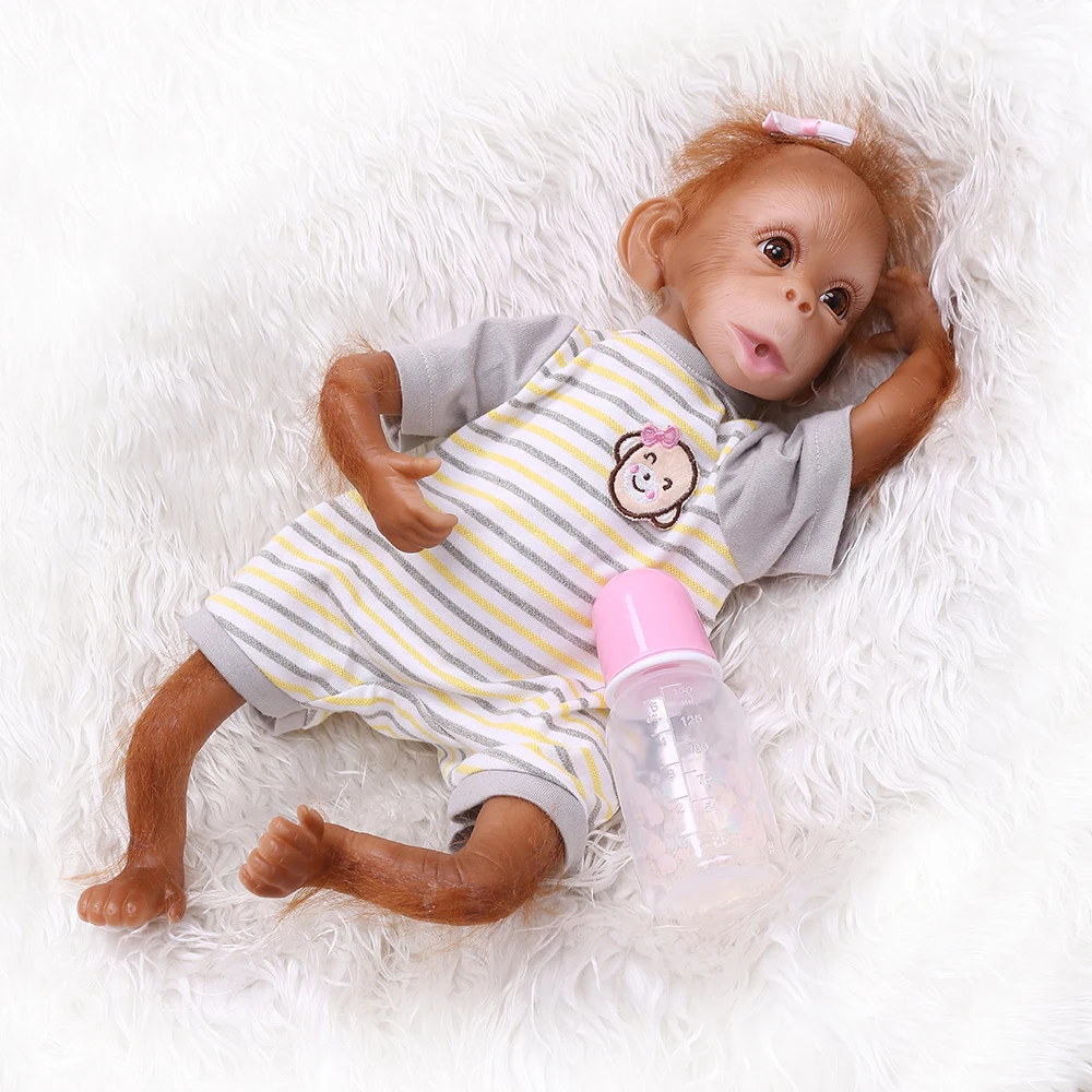 Эта кукла-обезьянка выглядит как обезьяна. Изготовлен из силиконового винила и полипропиленового хлопка, в настоящей детской одежде, 16 дюймов от головы до ног, как настоящая детская обезьянка. Идеальные детские игрушки, подарки на Рождество и день рождения, Коллекционирование кукол.