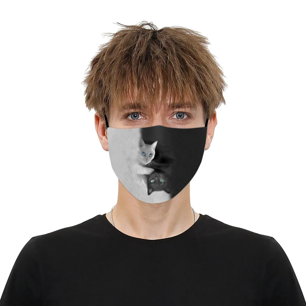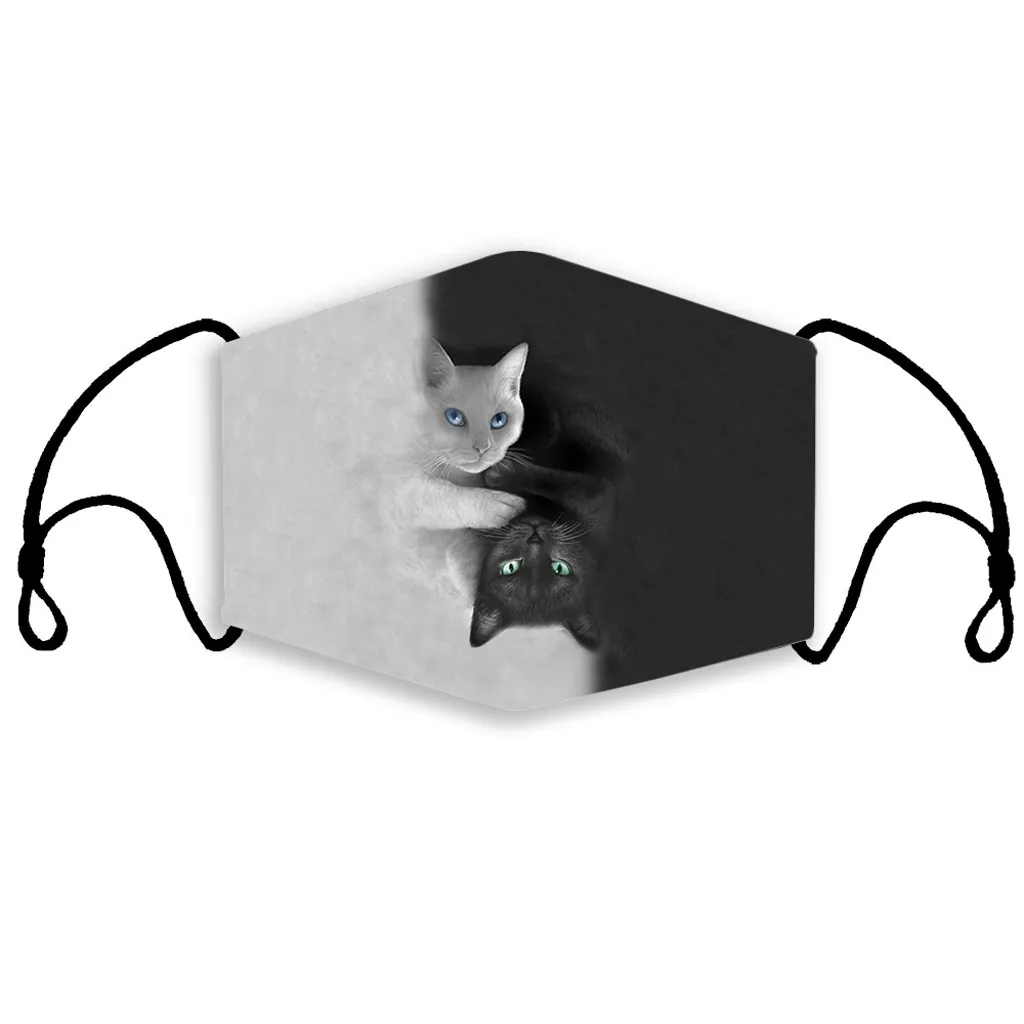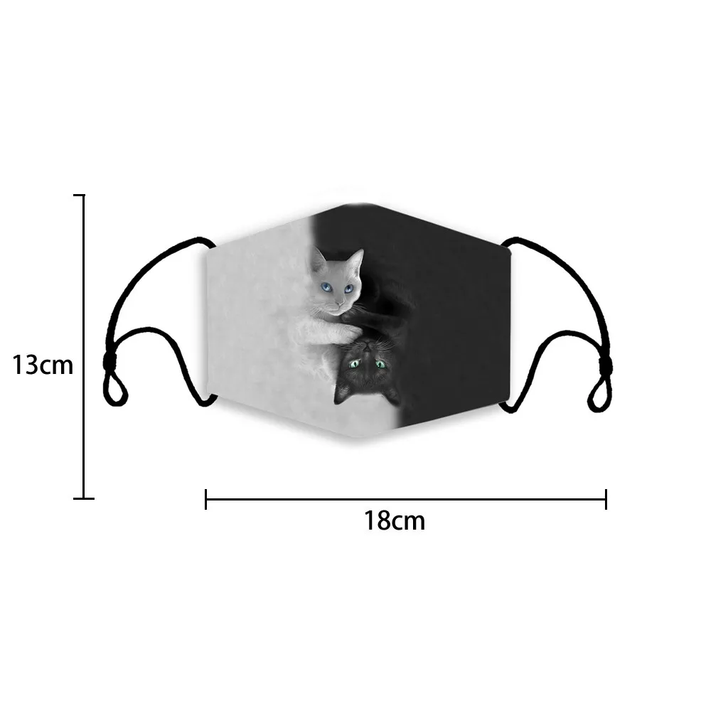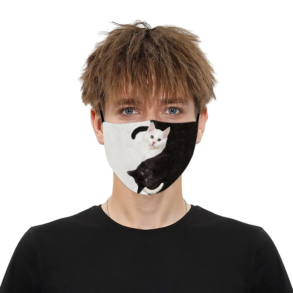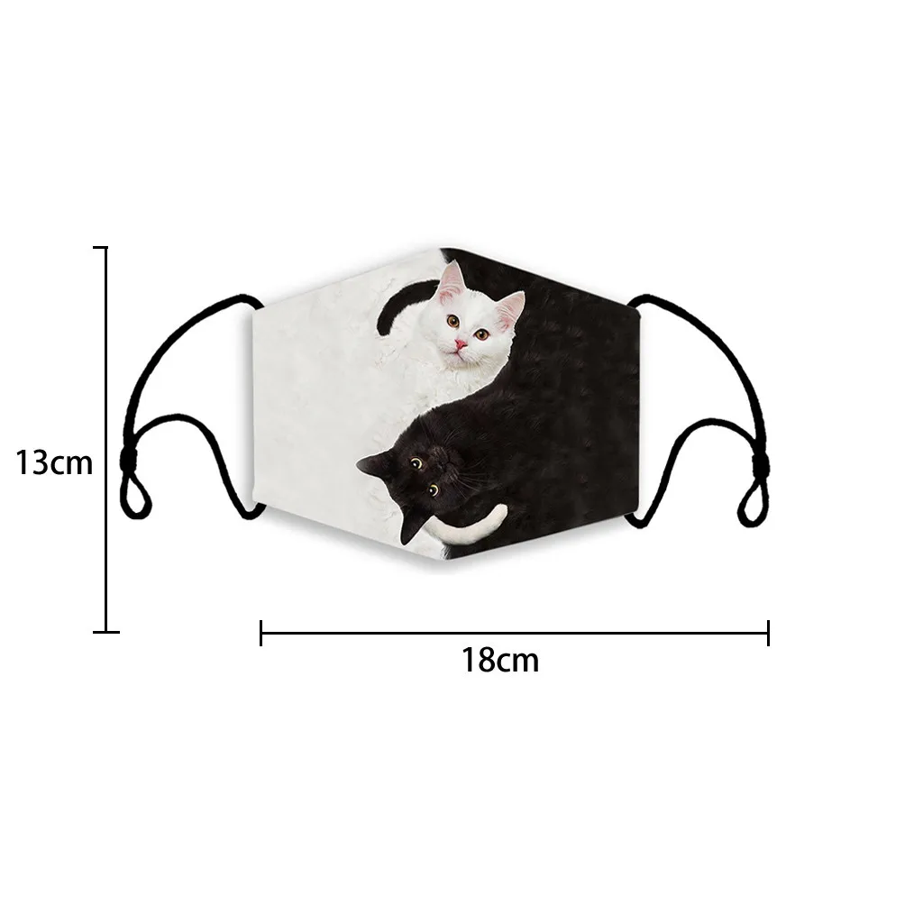 Многоразовая маска для взрослых с 2 фильтрами, кошачий принт, защита от загрязнения, моющаяся маска для рта, защитная маска для лица