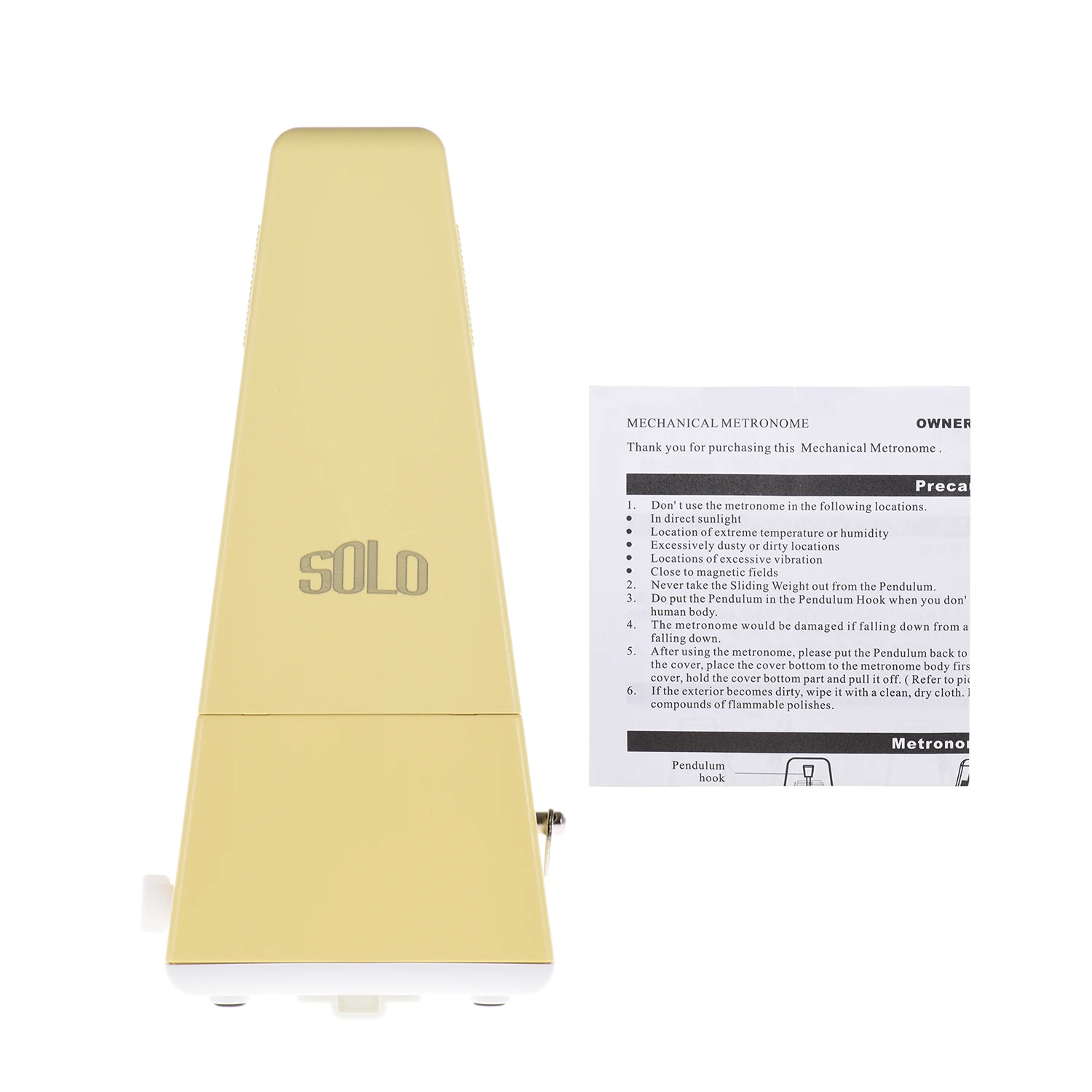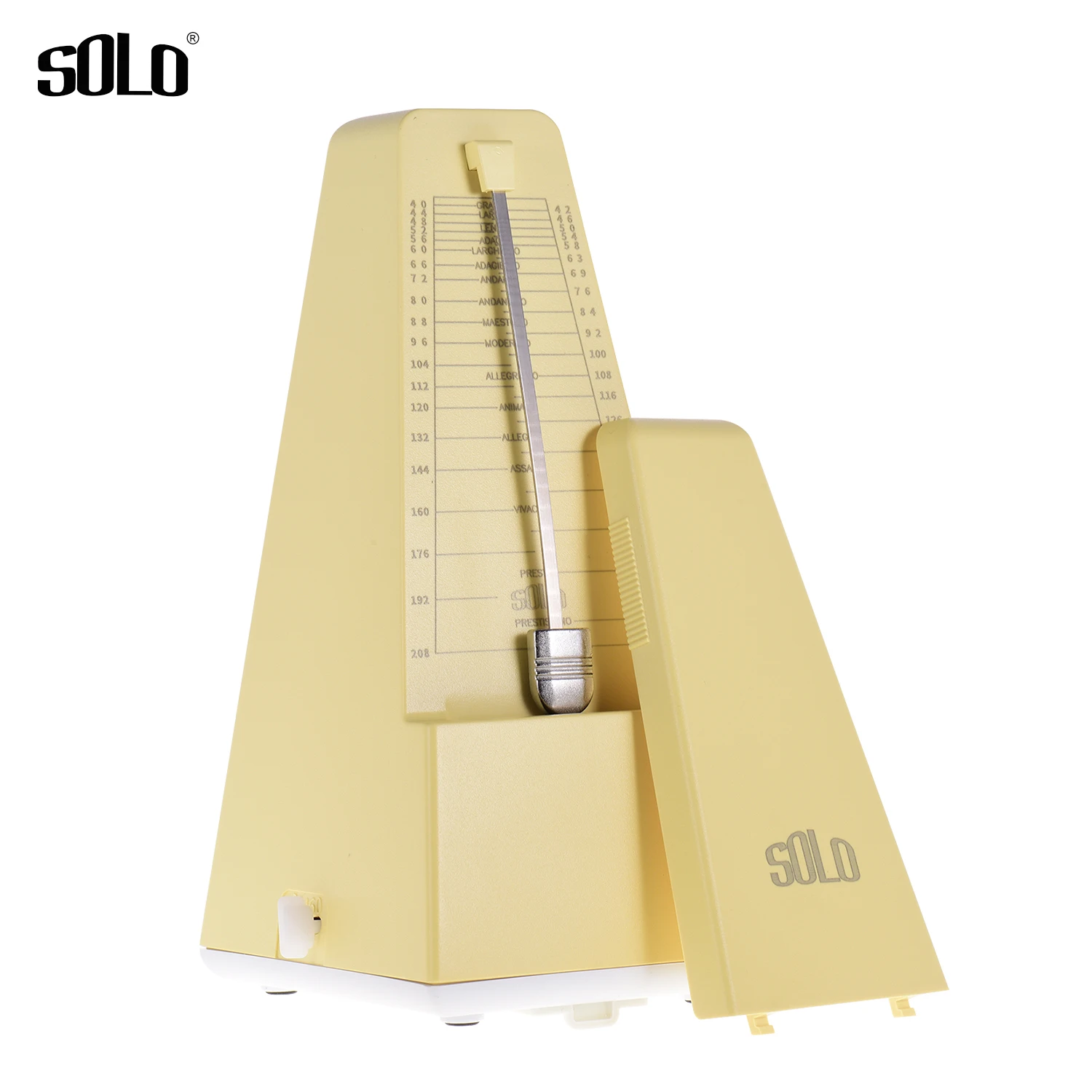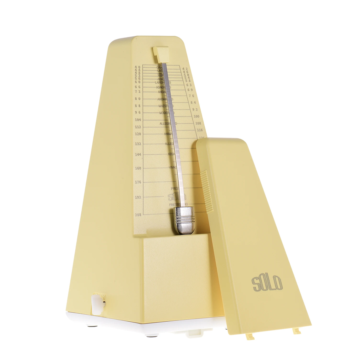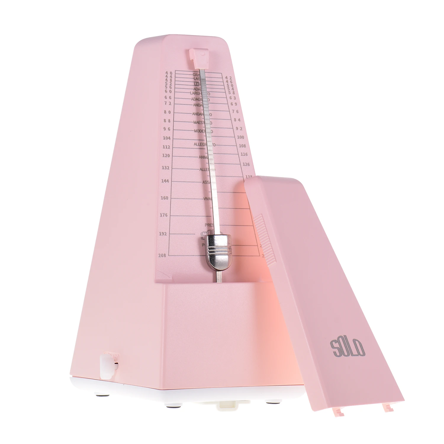 Простой в использовании, сначала намотайте его, затем выберите желаемый ритм (2/3/4/6/0) и темп (40-208 bpm), наконец снимите крышку и установите маятник в движение. Вы можете сползти вверх или вниз по весу на стержень маятника для регулировки скорости в соответствии с таблицей счетчика.