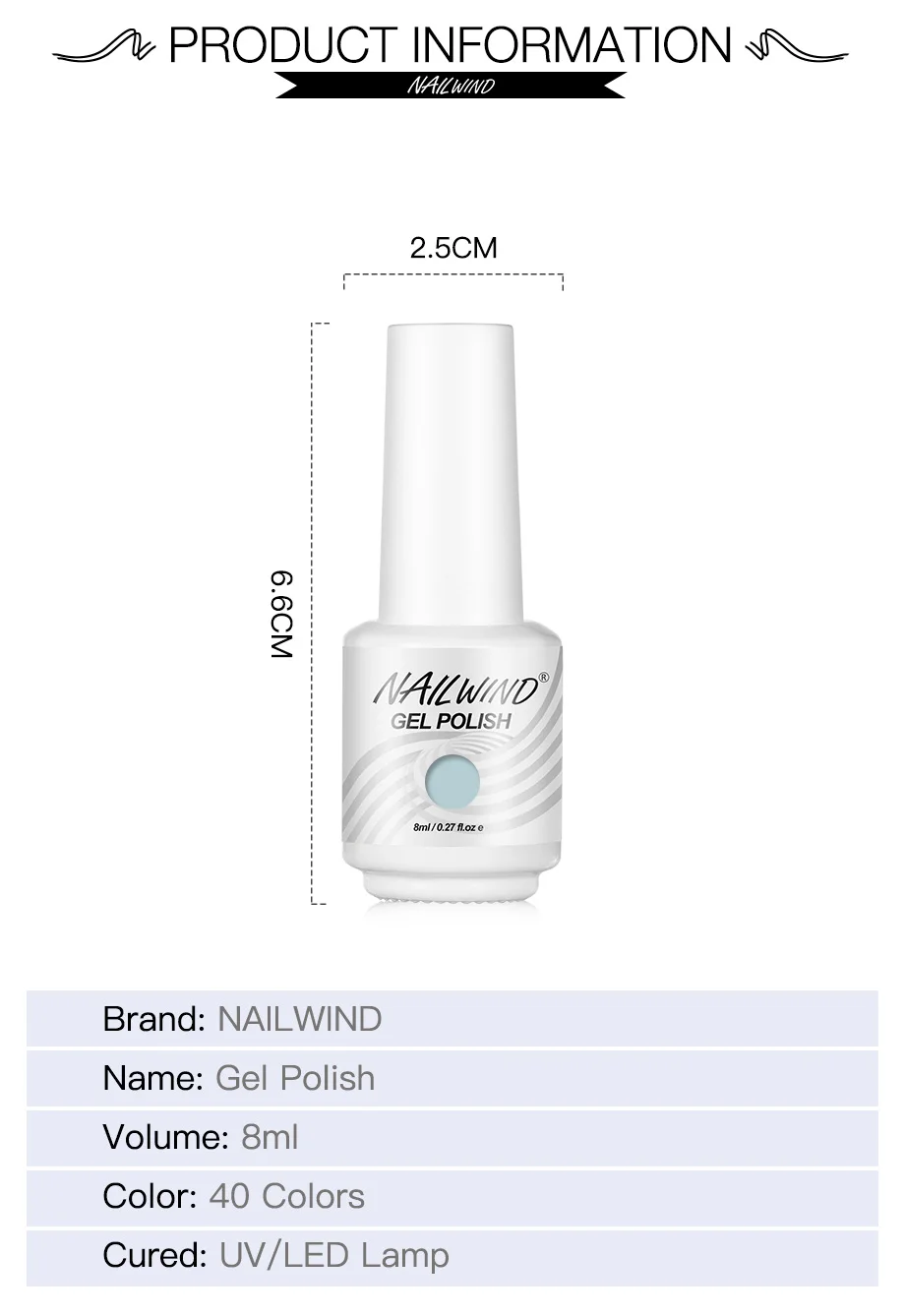 Характеристики Товара: Название бренда: NAILWIND Название: отмачиваемый гель для ногтей Объем: 8 мл Цвет: 40 цветов s Излеченная: УФ/Светодиодная лампа