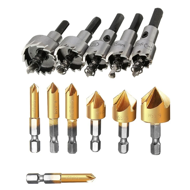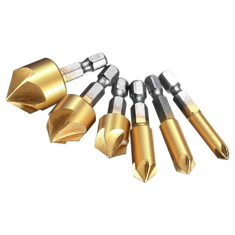 5 шт. HSS набор сверл с отверстием для пилы из нержавеющей стали 16-30 мм и 6x5 Флейта 90 градусов 1/4 дюйма Шестигранная HSS набор сверл для зенковки