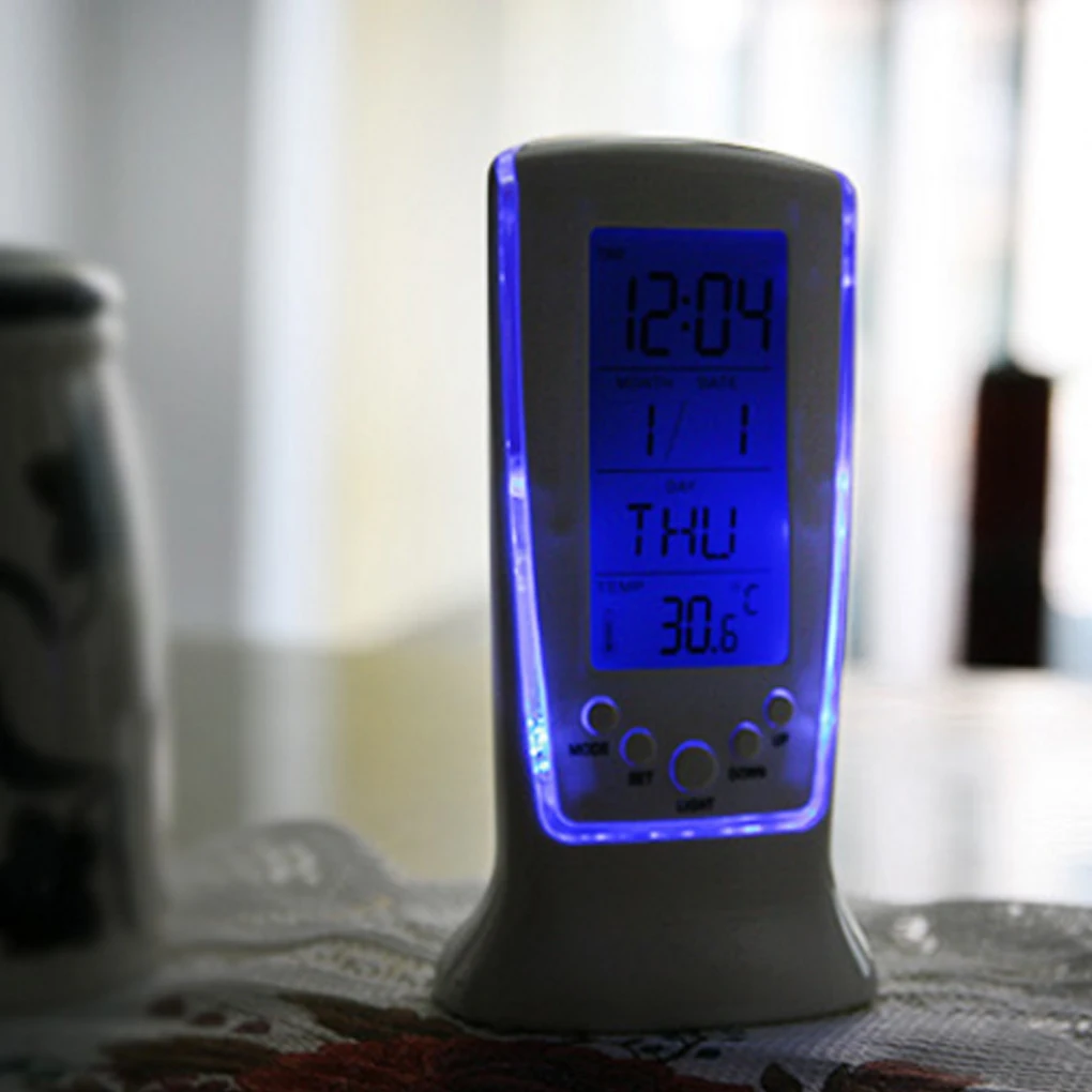 Цифровые часы с календарем ЖК-дисплей показывает дату и время Температура Дисплей светодиодный ночной Светильник настольные часы Повтор сигнала тревоги