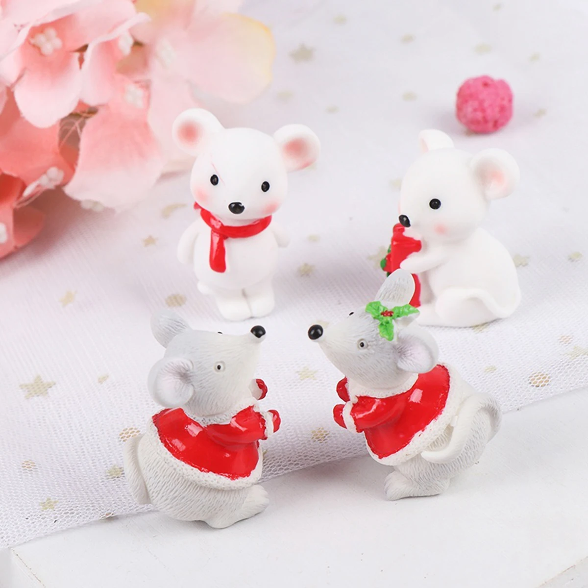 Милый Рождественский белый снег медведи мышь из зодиака крыса микро пейзаж мини-Статуэтка фигурка орнамент миниатюрные детские игрушки подарок