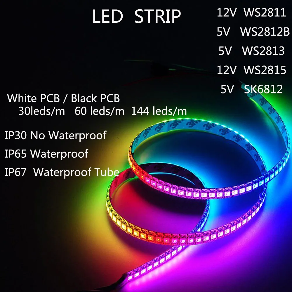 Примечание: Цена только Светодиодная лента, не включает блок питания или светодиодный контроллер! Каждый 0,5 метр с Паяные соединения, пожалуйста, обратите внимание! Светильник долгое время не включается, когда полоса находится в катушке. Название товара: 12V WS2811 Светодиодные ленты Светодиодная лента 5 в WS2812B Светодиодная лента 5V WS2813 12V WS2815 Светодиодные ленты Светодиодная лента 5V SK6812 Особенности: 1. Источник питания и светодиодный контроллер: (1) WS2811 должен использовать блок питания DC12V и светодиодный контроллер управления для управления! (2) WS2812B должен использовать блок питания DC5V и светодиодный контроллер управления для управления! (3) WS2813 должен использовать блок питания DC5V и светодиодный контроллер управления для управления! (4) Светодиодный фонарь WS2815 обновленная версия 5 в WS2812B светодиодный. Для 5 м светодиодный полосы, даже если все светодиодный s включены полностью белый, 12 В версия не имеет падение напряжения. Вам не нужно вводить питание так часто, как версия 5 В. (5) SK6812 должен использовать блок питания DC5V и светодиодный контроллер управления для управления! 2. Цвет печатной платы: белый/черный 3. Степень защиты: (1) IP30 --- не водонепроницаемый, для использования в помещении (2) IP65 --- силиконовое покрытие, легко режется, наружное использование (3) IP67 --- силиконовая трубка, требуется повторное запечатывание после резки, уличное использование IP30,IP65, есть пленкой длиной 3 м клейкая лента на задней стороне. Вы можете легко установить, IP67 без 3 м клей 4. Параметры продукта: (1) Рабочее напряжение: WS2812B/WS2813/SK6812: 5 В постоянного тока WS2811/WS2815: 12 В постоянного тока (2) Светодиодный источник: A. WS2811LEDs: SMD 5050 RGB B. WS2812B светодиодный s: SMD 5050 RGB светодиодный со встроенной улучшенной версией ws2811 ic C. WS2813 /WS2815LEDs (такой же протокол, как WS2811S, но с двухсигнальными проводами, поэтому может управляться теми же контроллерами WS2811/ws2812), разработан с одним проводом данных и одним резервным проводом данных. Непрерывная передача сигнала. Если поврежден один светодиодный индикатор, может работать следующий светодиодный индикатор. D. SK6812 Светодиоды: SMD 5050 RGBW встроенный набор микросхем SK6812 (3) светодиодный Кол-во: 30/60/144 светодиодный/M (4) IC Кол-во: WS2811: 10/20/48 шт/м (1 IC дисков 3 светодиодных чипа) Ws2812B/WS2813/WS2815/SK6812: 30/60/144 шт/м (1 IC дисков 1 светодиодный чип) (5) Мощность: 9/18/43.2 Вт/м (6) серые Весы: 256/цвет (7) удобство: WS2811: 3 светодиодный/режущий (внешний 2811 ic, 1 ic контроль 3 светодиодный) Ws2812B/WS2813/WS2815/SK6812: Каждый светодиодный (8) угол луча: 120 ° (9) режим цвета: A. WS2811: 133 шаблон и 100 скоростей B. WS2812B: 8 бит/цвет Цвет s: полный цвет RGB, изменение цвета мечты; C. WS2813: 8 бит/цвет, Цвет s: полный цвет RGB, изменение цвета мечты D. WS2815: полноцветный 24-bit. Е. SK6812: RGBW (10) Длина волны (нм): RGB: красный, 650 нм; Зеленый, 520nm; Синий, 460nm. RGBWW: 2700-3000K; RGBNW: 4000-4500K; RGBCW: 6000-6500K (11) Расстояние между двумя светодиодами: 30 светодиодов/м -- 28 мм, 60 светодиодов/м -- 12 мм, 144 светодиодов/м -- 1,92 мм. (12) длина светодиодов по вашему выбору (13) Разъем: WS2811/WS2812B/SK6812: 3pin соединительная пара WS2813/WS2815: 4-контактный Соединительная Клеммная пара (красный: мощность 5 В, Зеленый: линия даты, синий: линия даты в режиме ожидания, черный: GND) В комплект входит: 1 * Катушка 12 ws2811 rgb полосы + 3 контактный разъем (длина по вашему выбору) Или 1 * рулон 5v ws2812B rgb полосы + 3 контактный разъем (длина по вашему выбору) Или 1 * рулон 5v ws2813 rgb полосы + 4 контактный разъем (длина по вашему выбору) Или 1 * Катушка 12 ws2815 rgb пол