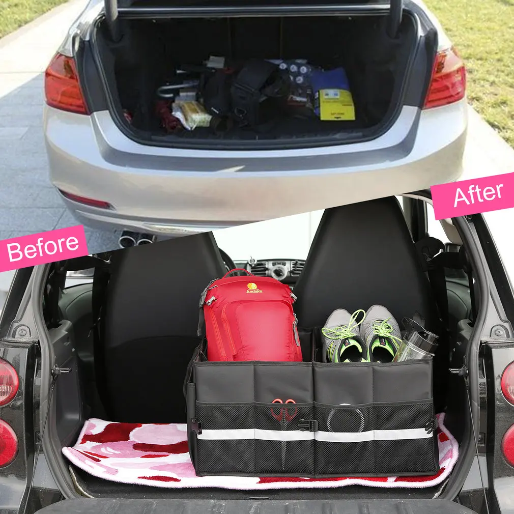 Полностью складывается, поэтому, когда не используется, органайзер для багажника будет складываться на плоской подошве для удобного хранения.