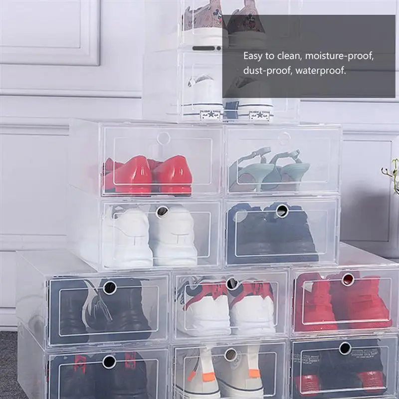 Коробка для хранения обуви имеет простой дизайн, имеет большую емкость и сильный подшипник. Прозрачная пластиковая коробка для обуви гарантирует, что вы можете увидеть внутреннюю часть обувного шкафа, не открывая все обувные коробки, что позволяет легко найти подходящую обувь.