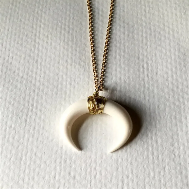 Простой дизайн Белый слоновой кости костяной рог кулон ожерелье для женщин черный полумесяц Луна Чокеры ожерелья Модные ювелирные изделия