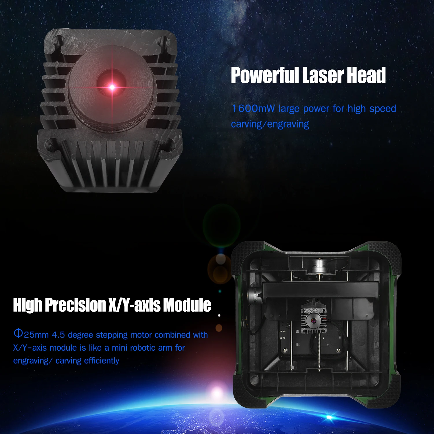 Универсальная мини лазерный гравер: 4,5 градусов шаговый двигатель в сочетании с высокой точностью X/Y модуль похожа на мини-Роботизированная рука от китайского производителя для лазерной гравировки/резьба качественно, встроенный вентилятор для рассеивания тепла и дыма, 1600 мВт большая мощность для высокоскоростной резьбы/гравировки, соотношение разрешения 508 точек/дюйм для создания четкого и изысканного изображения.