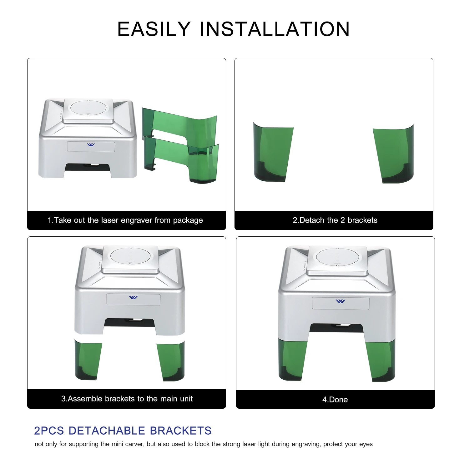 Защитные очки и кронштейны для глаз: 2 шт. съемные кронштейны не только для поддержки мини-Карвера, но также используются для блокирования сильный лазерный светильник во время гравировки, И пара очков включена для защиты глаз.