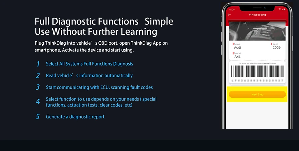 ThinkDiag идеально подходит для использования с нашим уникальным приложением. Легко и удобно, в любое время и в любом месте.