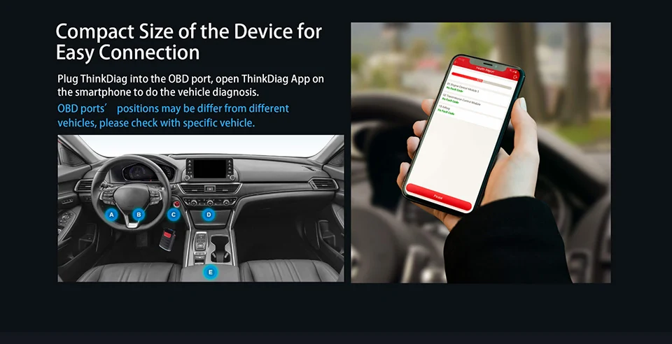 2. Подключите ThinkDiag в порт OBD, откройте приложение ThinkDiag на смартфоне, чтобы сделать диагностику транспортного средства.