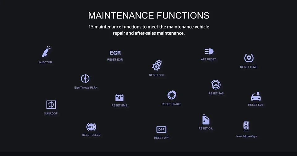 A7:Подписка на программное обеспечение от каждого производителя дает вам доступ ко всем диагностическим функциям, включая чтение/четкие коды, Потоковую передачу данных в режиме реального времени, тесты на включение и все функции обслуживания выбранного вами производителя.