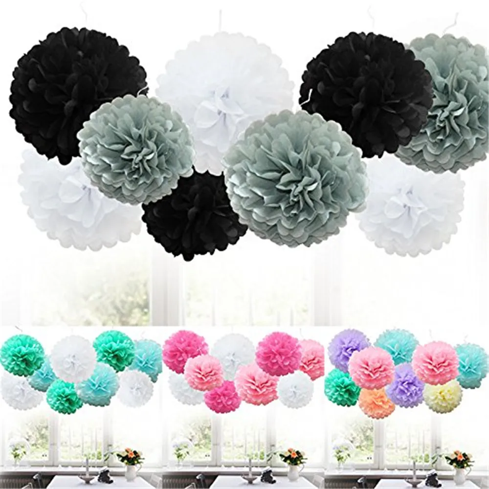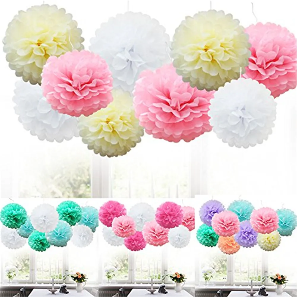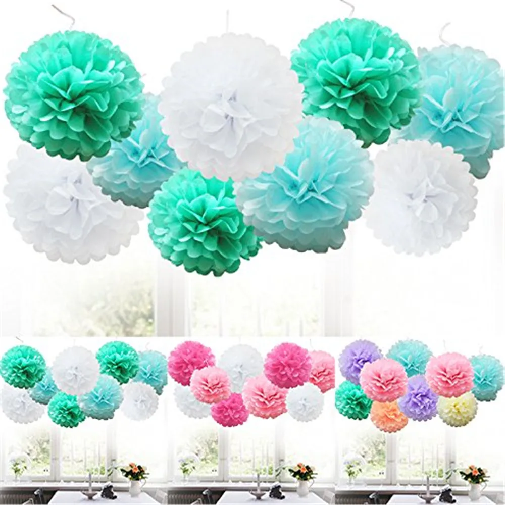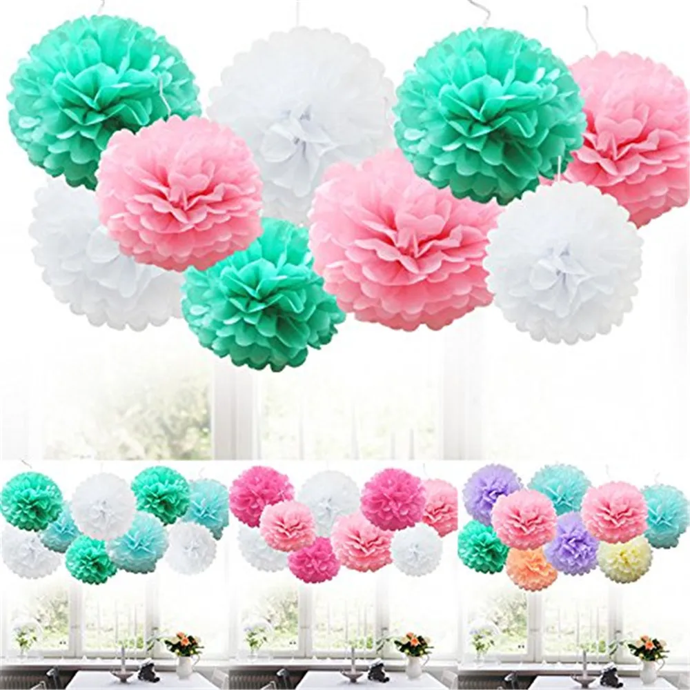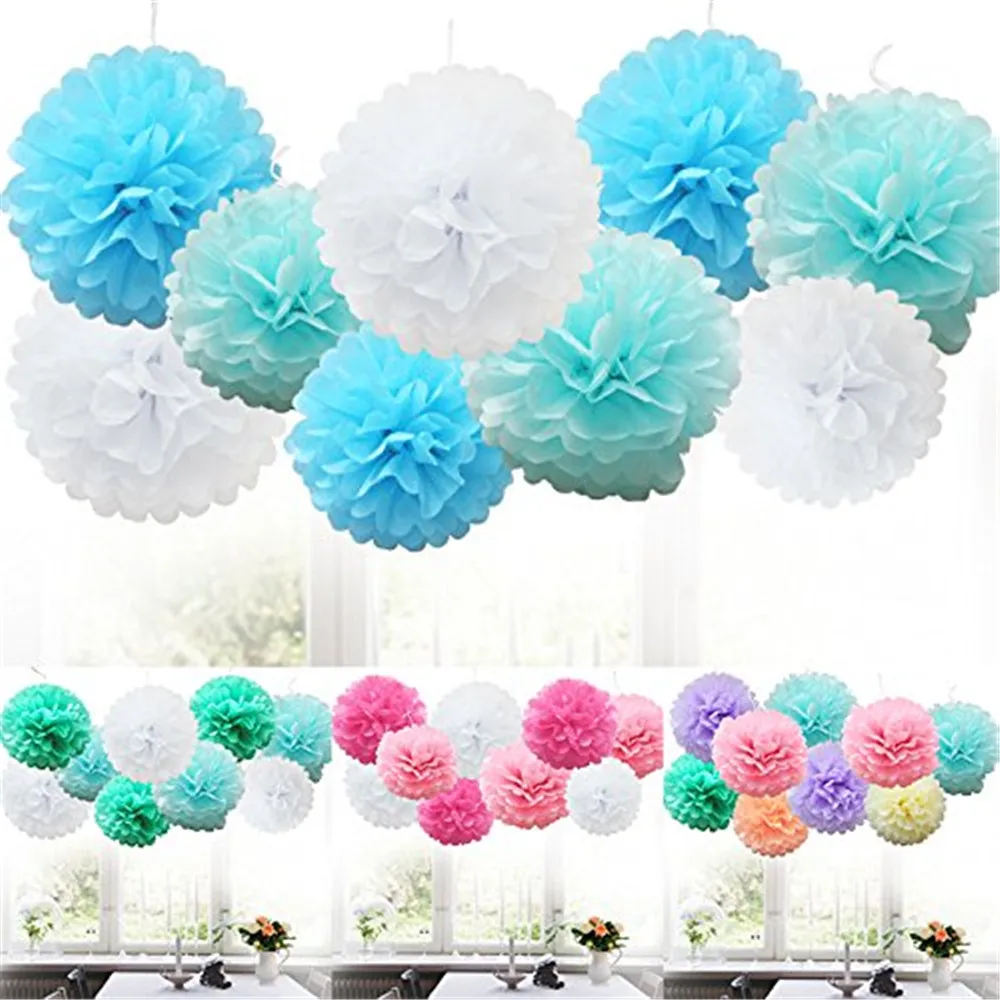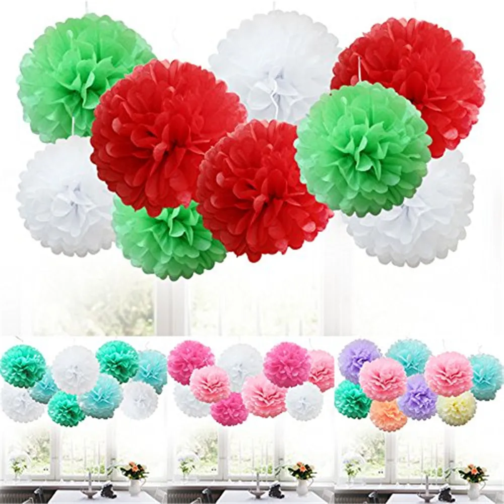 9 шт Смешанные помпоны из оберточной бумаги цветочные шарики пушистые рождественские украшения для свадебной вечеринки