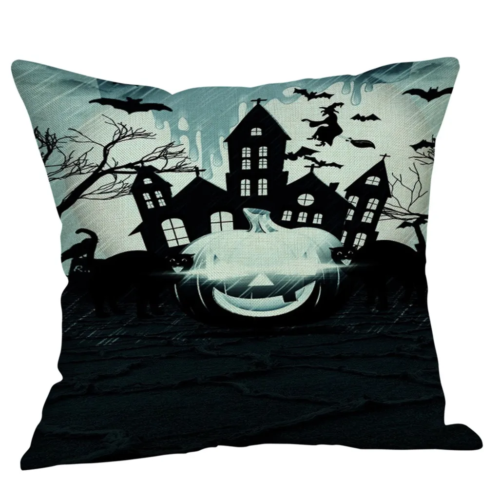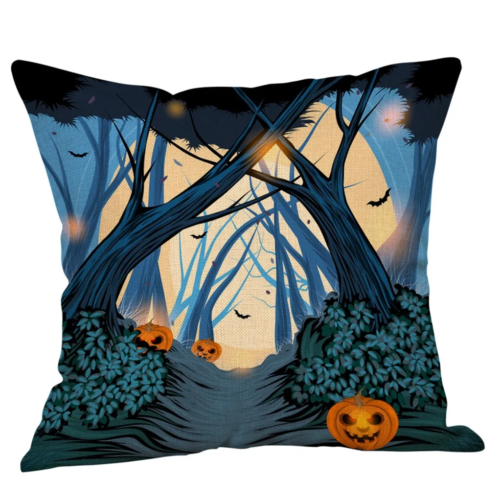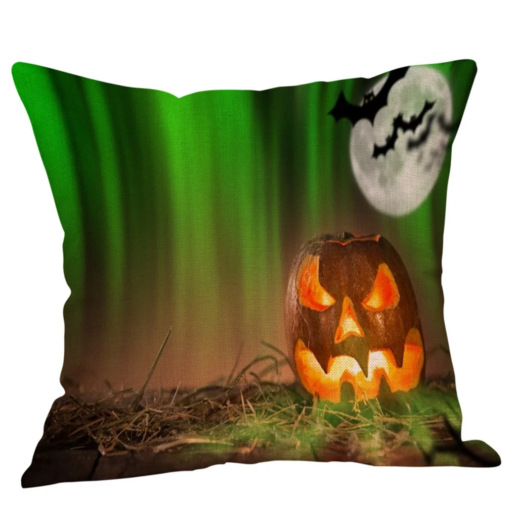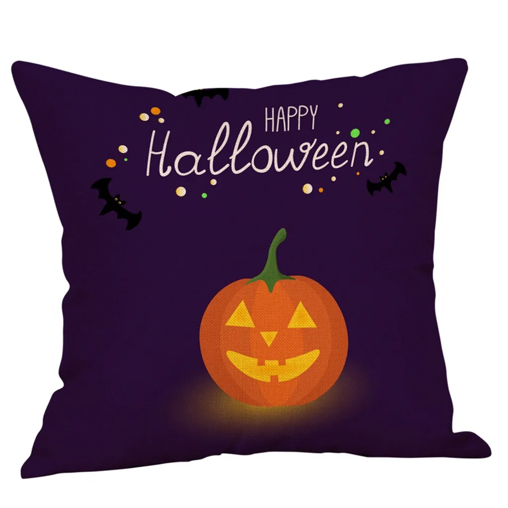 Чехол для подушки из хлопка и льна с тыквой на Хэллоуин