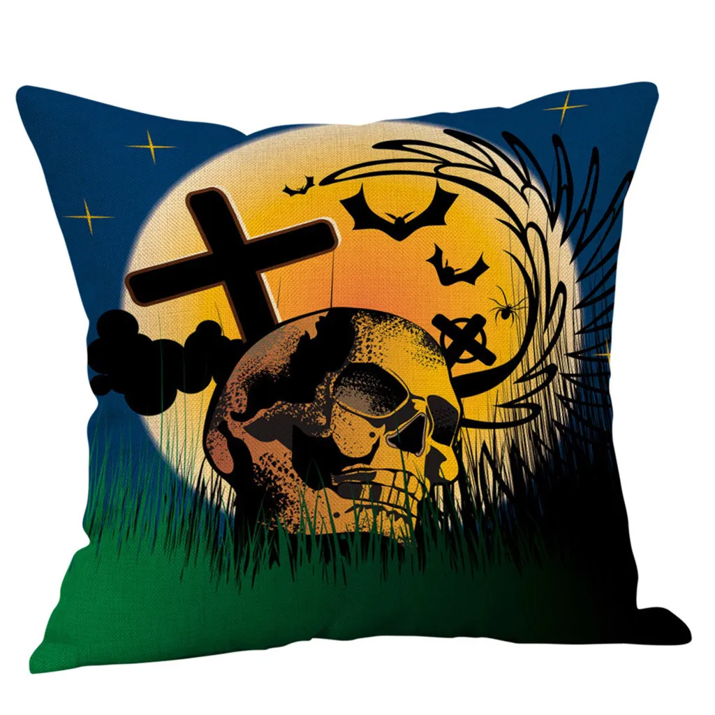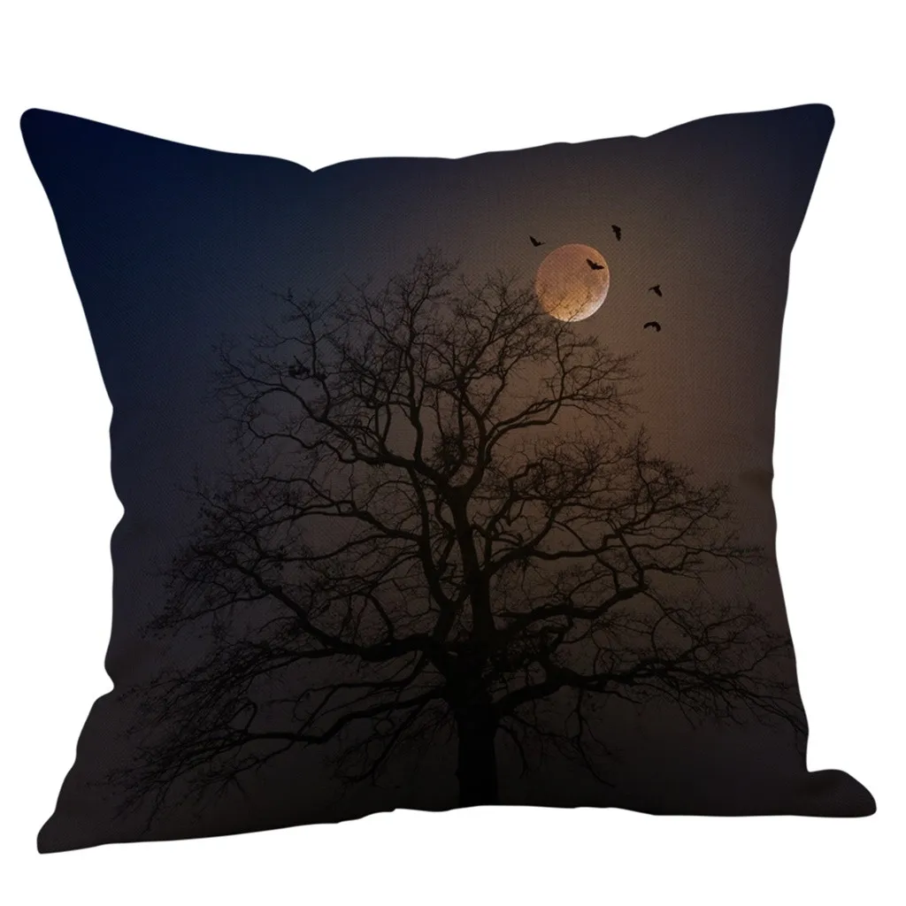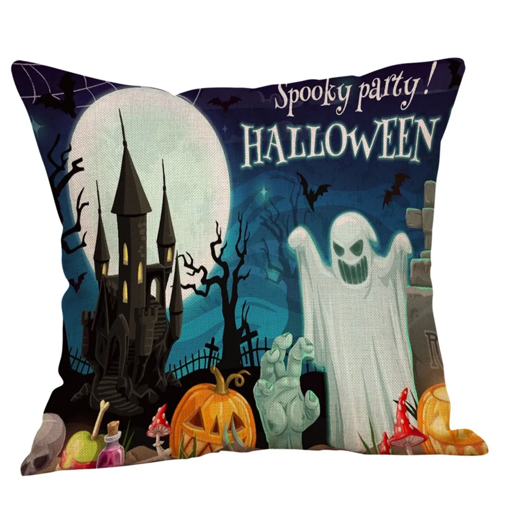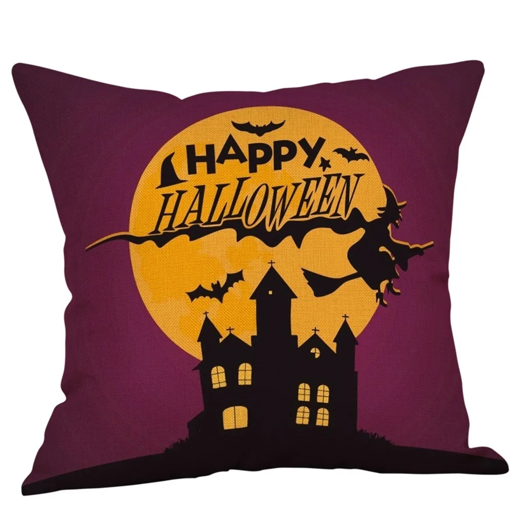 Чехол для подушки из хлопка и льна с тыквой на Хэллоуин