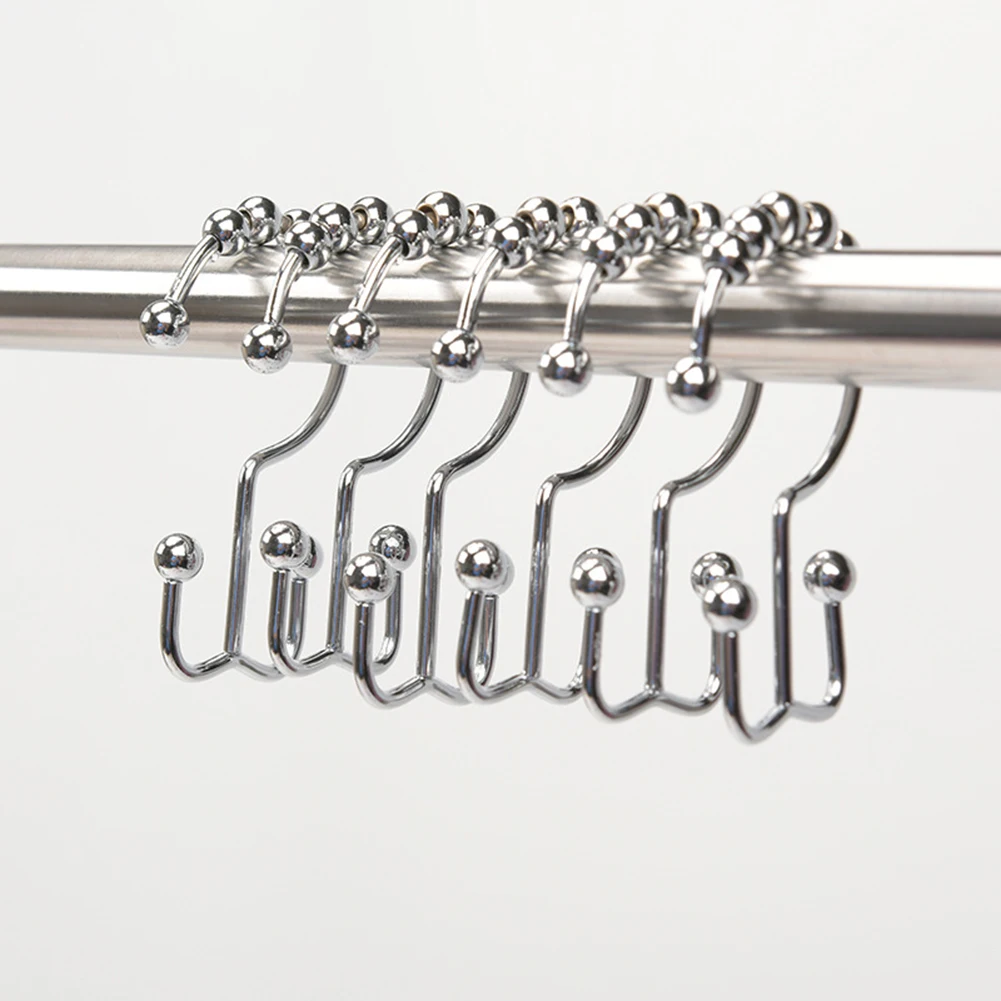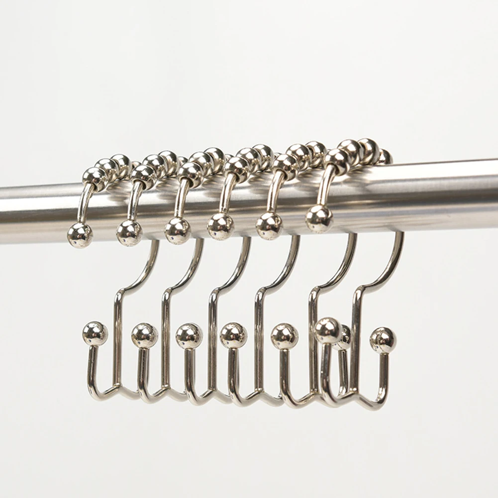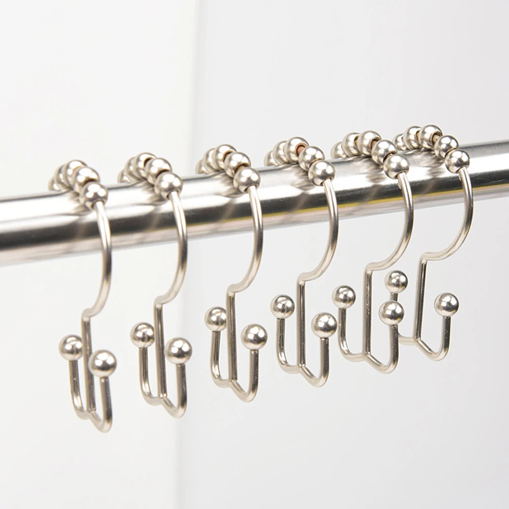 3.Плавное скольжение:Наслаждайтесь легким скольжением по стержню для душа. Пять роликовых шариков в верхней части каждого крючка позволяют более плавно скользить, пока вы тяните штору или подкладку через стержень.