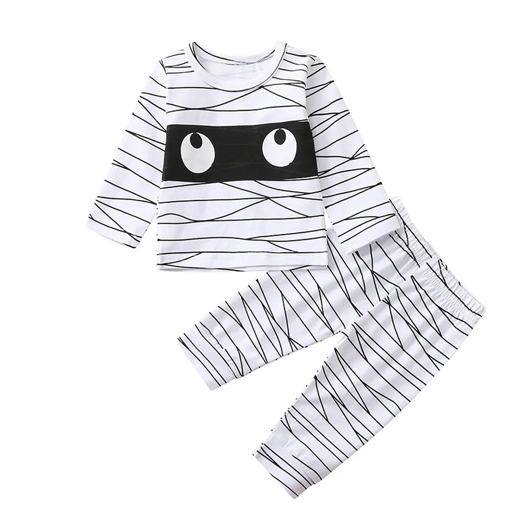 Топы на Хэллоуин для маленьких мальчиков и девочек + Забавные штаны для мамы, пижамный комплект