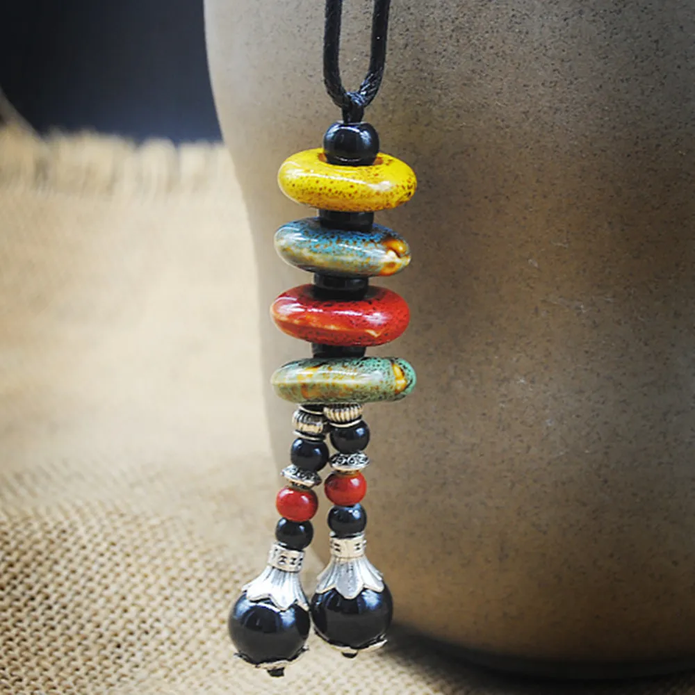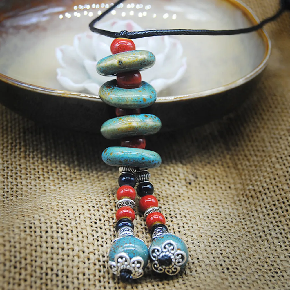 Ретро этнический стиль ручной работы керамический свитер с бисером цепочка ожерелье N262