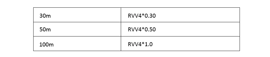 Максимальное расстояние до 100 метров. Различные расстояния, используйте кабель разного диаметра, пожалуйста, проверьте следующее, чтобы выбрать кабель для соединения. (Мы отправим вам 1 м кабель для тестирования, для более длинного кабеля, нужно купить самостоятельно при установке)