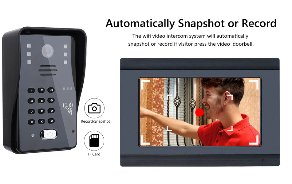 7-дюймовый сенсорный ЖК-экран высокой четкости, с функцией съемки, записи посетителей.