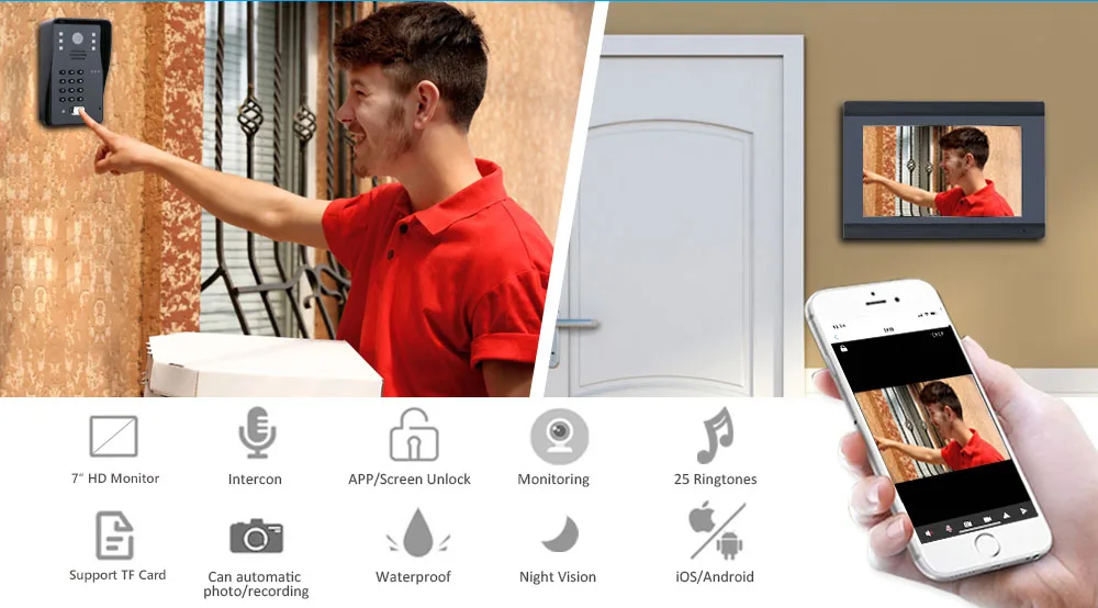 Благодаря новейшей технологии Wi-Fi, когда Посетитель нажимает дверной звонок, ваш телефон получит уведомление от приложения, вы можете видеть, слышать и говорить с кем-либо у вашей двери, даже Удаленная разблокировка с помощью мобильный телефон in повсюду.