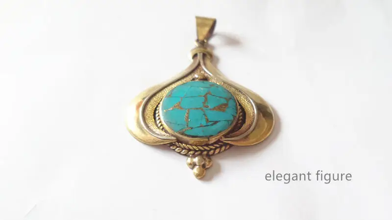 --- Латунные инкрустированные бирюзовые Золотые Большие Подвески