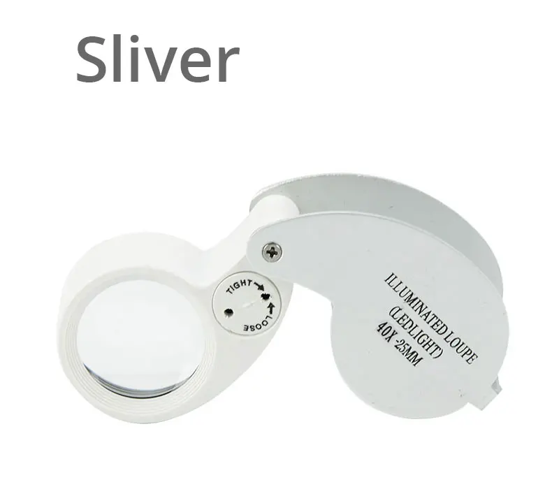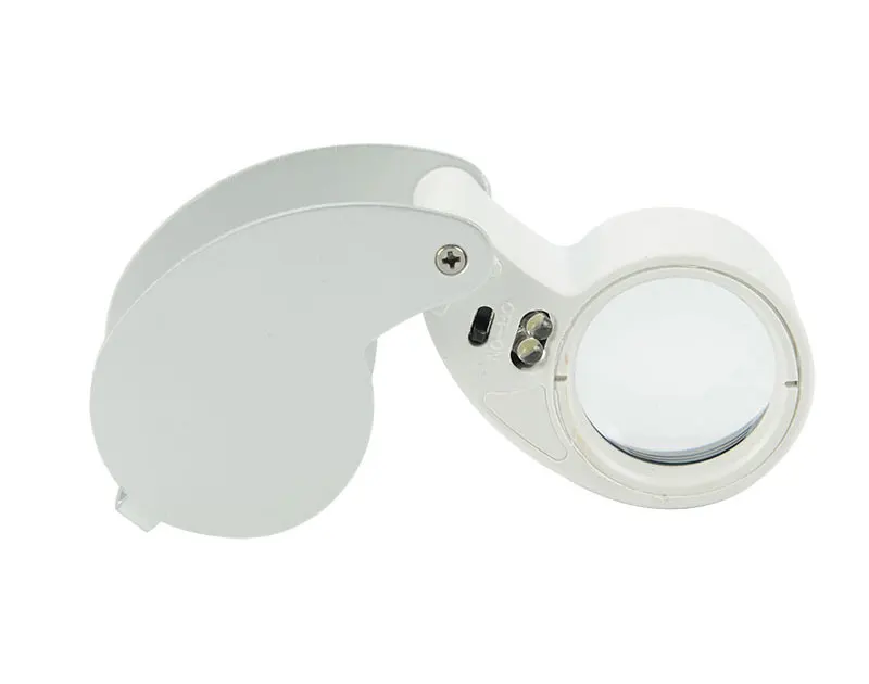 Складная Ювелирная Лупа, портативная со светодиодной подсветкой, увеличительное стекло, карманный размер, прекрасная Ювелирная Лупа, 40X увеличение, металл, серебро